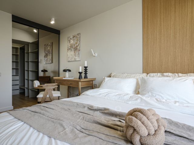 Мастер-спальня (22,6 кв.м.) с красивым эркером и небольшой гардеробной, Гостевая / детская (15,3 кв.м.), Кухня (10,5 кв.м.), Санузел (7,8 кв.м.) - оснащен комплексом: гидромассажная ванна, душевая кабина с турецкой баней, фирма Jacuzzi, Кладовка (2 кв. м.) - для стиральной машины, хоз.нужд, Прихожая (4.1 кв.м.) с вместительной изолированной гардеробной.
