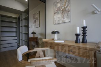 Малая комната (14,1 кв.м.) - сейчас это самостоятельный кабинет (с зоной домашнего кинотеатра), в котором стены обшиты красным деревом - может быть использована для любых целей;