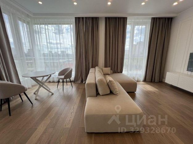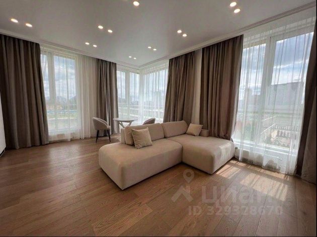 В квартире все окна панорамные и вид на реку из всех комнат. Квартира очень светлая, очень теплая.