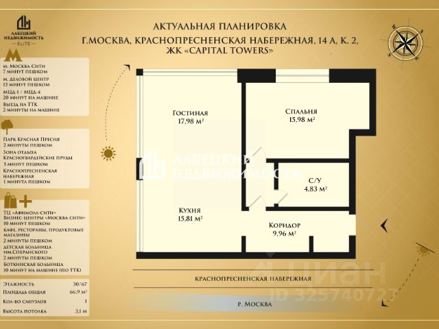 Закрытая территория, круглосуточная охрана. Консьерж-сервис 24/7, приватные лобби - Фитнес, СПА, бассейн с панорамным видом - Парк во дворе - Подземный паркинг с зарядками для электромобилей - Чистый воздух и вода - современные инженерные системы Идеальный формат: интерьер, в который не нужно вкладываться, и вид, который продаёт сам себя. 3 минуты до Москва-Сити, 5 минут до метро - Рядом парк Красная Пресня, набережная, рестораны и магазины премиум-класса.