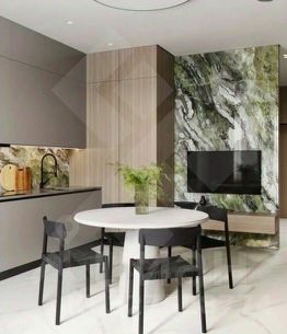 - Просторная гостиная объединена с кухней, обеспечивая удобство пространства для семейных ужинов и приема гостей.