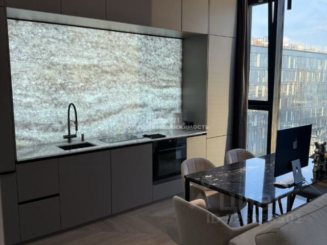 Квартира состоит из - уютная изолированная спальня, с большим высоким гардеробом, разными видами освещения; светлый зал/студио с полноценным раскладывающимся диваном, с отдельностоящей обеденной зоной; зона кухни с мебельным гарнитуром класса люкс, выполнена из натурального шпона, включая фурнитуру Blum, со встроенной качественной техникой известных брендов - встроенный холодильник, варочная панель, дизайнерская вытяжка подключенная напрямую в вытяжную вентиляцию, встроенная стиральная машина, столешница выполнена на заказ из натурального мрамора Imperador Gold, стеновая панель из штучной итальянской плитки; ванная комната выполнена с использованием итальянской эксклюзивной штучной плитки, установлен тропический душ, встроенная сантехника, есть душ биде. Телевизор Philips со Смарт-ТВ высокого разрешения 4К, и умной подсветкой Ambilight, установлен высокоскоростной интернет, умное освещение, система кондиционирования Electrolux. Дорогостоящая мебель, предметы интерьера и дизайна, гипсовая лепнина, итальянские светильники. Для хранения вещей предусмотрены - гардеробная, полноценный шкаф при входе, также большой шкаф в спальне, шкаф в санузле, кровать с подъемным механизмом. В ЖК есть двухуровневая парковка, и вся необходимая инфраструктура (магазины, супермаркеты, открывается фитнес-клуб, кафе, рестораны, и многое другое)
