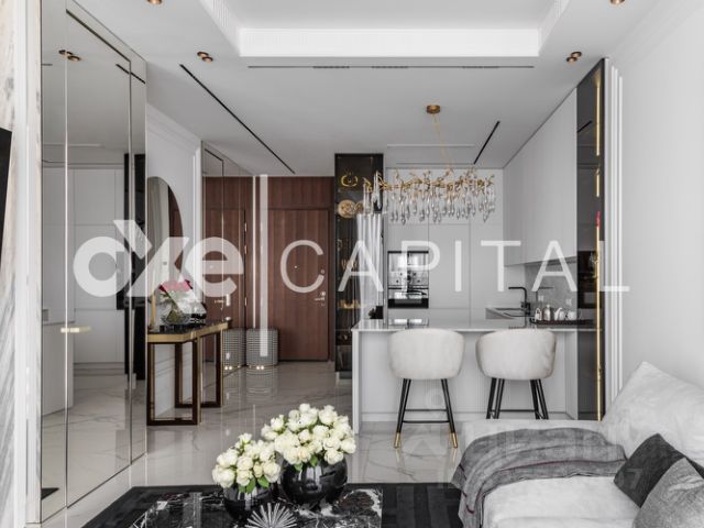 • Роскошный дизайнерский ремонт: Современный стиль с использованием премиальных материалов, включая итальянский оникс сорта Arco Iris с подсветкой, создающий завораживающую атмосферу.