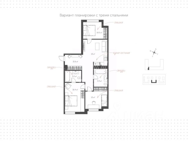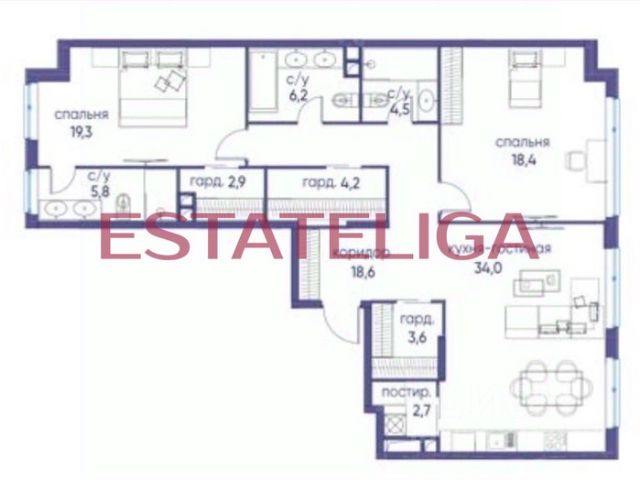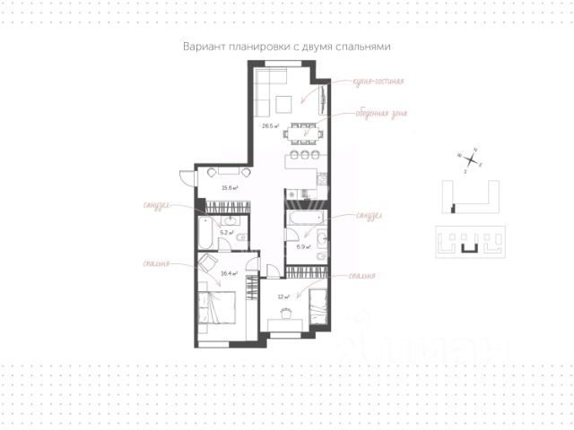 Общая площадь 73,9 кв.м. Этаж 14/22. Планировка: кухня-гостиная, 2 спальни, 2 санузел. Высокие потолки более 3 метров. Панорамное остекление. Квартира без отделки, поэтому возможна свободная планировка. Панорамный вид на парк.