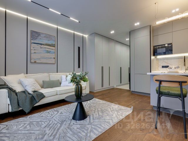 Интерьер выполнен в современном стиле и обеспечивает ощущение уюта и домашнего комфорта