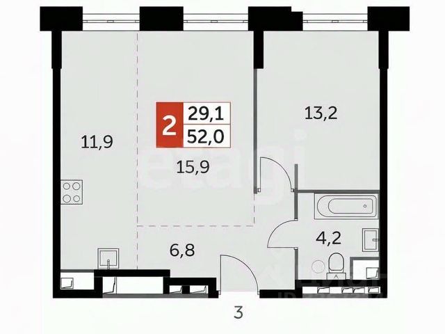 Две изолированные комнаты 15 и 13 кв.м, соответственно!