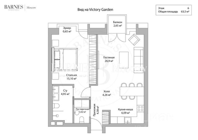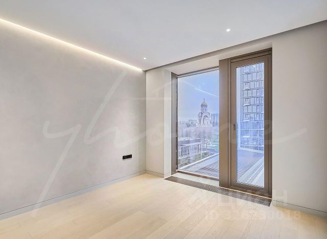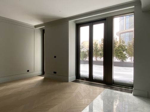 Квартира с двумя спальнями 116,8 м² и террасой 89,8 м² общей площадью 143,8 м² (терраса учтена с понижающим коэффициентом 0,3 ) в комплексе премиум-класса Victory Park Residences рядом с Парком Победы. Квартира с готовой дизайнерской отделкой от застройщика в стиле "неофактура" расположена на первом этаже в корпусе 4. Окна выходят на две стороны, с видом в Victory Garden.