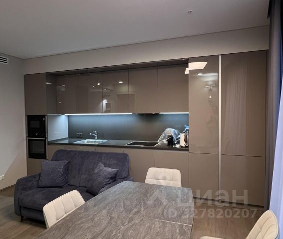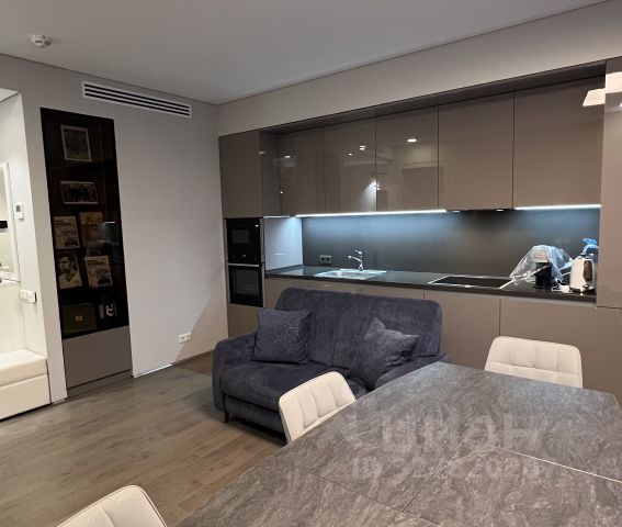 Планировка: кухня-гостиная, изолированная спальня, прихожая, ванная комната/санузел. В гостиной расположен уютный и очень стильный диван, который раскладывается в полноценное двуспальное место, телевизор 65', шкаф и стол для полноценной работы. В спальне шикарная двуспальная кровать с ортопедическим матрасом, стильные прикроватные тумбы, большой шкаф-купе с зеркалами и телевизор 55'. В прихожей оборудован вместительный шкаф-купе с продуманной системой хранения вещей. Кухня оборудована по последнему слову техники: стильный кухонный гарнитур, плита Elecrtolux с мощной вытяжкой, холодильник Samsung, духовой шкаф Electrolux, СВЧ-печь Panasonic и посудомоечная машина Electrolux. Рядом расположена обеденная зона с раскладывающимся столом. Санузел оборудован качественной сантехникой: огромной, шикарной ванной 120х180 для двух человек, зеркало с подсветкой и подогревом. Для обеспечения бесперебойной подачи горячей воды установлен водонагревательный бойлер. Интернет, wi-fi.