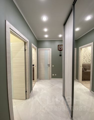 Потолки во всей квартире натяжные , 3 м. высотой. С дополнительной подсветкой.