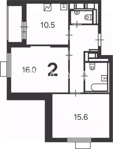 • ✓ В базе Циан 1 2-комнатных квартир.