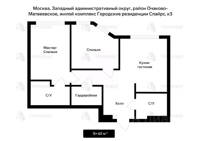 Номер лота: 98999. О доме: Премиальный жилой комплекс 2021 года постройки, расположенный в престижном западном районе столицы. Есть свой двор с огороженной территорией, консьерж-служба, круглосуточная охрана, подземный паркинг. Прямо в доме удобная инфраструктура для резидента. О квартире: Согласно планировке: 2 спальни, одна из них мастер-спальня со своим с/у, гардеробная, 2 санузла, кухня-гостиная. Максимально продуманная планировка, высокие потолки, двери с умными порогами, двойная шумоизоляция оконных рам, потолка и стен внутри квартиры, входная дверь с шумоизоляцией и умным замком, мультисплит система с двумя внутренними блоками HISENSE, тёплые полы по плитке в коридоре и в с/у, высококачественные материалы отделки - всё это составляет основную ценность данного лота. Приточная вентиляция и климат контроль обеспечивают правильную циркуляцию воздуха, дополнительно установлен кондиционер в мастер-спальне. Вся мебель и техника подбиралась или делалась на заказ под дизайн-проект. На кухне Gorenje: холодильник, посудомоечная машина, электроплита, встроенная микроволновая печь с грилем. В санузлах есть душевая кабина и ванная, установлен водонагреватель на 100 литров. Оснащённая гардеробная комната, достаточно встроенных зон хранения. В спальных комнатах полноценные кровати с хорошим матрацем, зонированы места для работы за компьютером. Грамотно продумано освещение, расположение розеток. Инфраструктура: О районе: Дом находится в районе Очаково-Матвеевское, в одном из самых привлекательных для жизни за пределами центра Москвы. Вблизи территории Матвеевского леса, природного заказника "Долина реки Сетунь" и сложившейся инфраструктуры района. Рядом детские сады и школы, аптеки и поликлиники, сетевые супермаркеты и торговые центры, салоны красоты и фитнес-клубы, службы сервиса и отделения банков. Район расположен близко к Кутузовскому проспекту в непосредственной близости к ведущим вузам — МГИМО, РУДН, МГУ. Транспортная доступность: Пешком 10 минут - метро "Славянский бульвар", ж/д платформа "Матвеевское". Удобные выезды на Кутузовский проспект, Минскую улицу и Аминьевское шоссе, на проспект Дорохова. До ТТК и центра - 10-15 минут. Документы: Взрослый собственник, никто не прописан, свободная продажа. Меня зовут Ольга Хамина — брокер компании Homeapp. Я занимаюсь продажей этой квартиры. Звоните, чтобы получить больше информации об объекте и договориться о просмотре. Показываем быстро!
