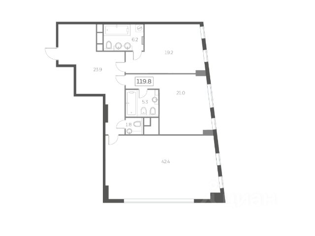 • ✓ В базе Циан 2 2-комнатных квартир.