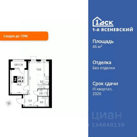 • ✅ Минимальная площадь: 34,6 м² м² (студии в наличии)