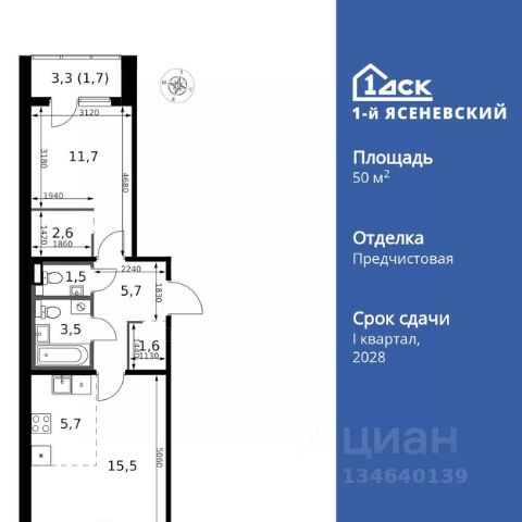 Прямая продажа от застройщика! Жилой Комплекс класса Комфорт Плюс. Продаётся 2-к квартира номер 175 общей площадью 50.3 кв.м. на 13-м этаже 18 этажного здания. Предчистовая отделка. Цена с учётом скидки. Особенности квартиры: - Квартиры рядом с метро - м. Корниловская 9 мин пешком - 63 га лесопарка за окнами - Школа c ИТ-кластером и бассейном. 2 детских сада - Организуем показ в удобное для вас время! - Мастер-зона с гардеробной. Просторное место для отдыха и удобного хранения вещей. - Распашная планировка - отличное сочетание удобства и свободы. - Увеличенное количество окон - дополнительное освещение и свежий воздух. - Гостевой санузел - комфорт и удобство для ваших гостей. - Евроформат - просторное и удобное жилье с отличной планировкой. - Можно оборудовать рабочее место - комфорт для работы и учёбы. - Возможность добавить спальное место - дополнительный комфорт для гостей. - Гардеробная - удобство для хранения и организации вещей. - Кладовая - дополнительное пространство для хранения. - Лоджия - уютное место для отдыха и тишины. Квартира с предчистовой отделкой. Вам не придется заниматься черновыми и трудоёмкими работы, а чистовую отделку и дизайн - сделайте на свой вкус. Информация о комплексе: ЖК "1-й Ясеневский": преимущества городской инфраструктуры и природы. Пешая доступность к метро, школе с бассейном и ИТ-кластеру, а также 63 га Троицкого лесопарка под окнами. Закрытая территория с бульварами, велодорожками, кафе и дворами без машин. Фруктовые деревья и городские сады создают уникальную атмосферу. Всего в 1 км от МКАД - идеальный баланс для современной жизни. Транспортная доступность: До метро "Корниловская" - 12 минут пешком До метро "Тютчевская" - 25 минут пешком До метро "Теплый стан" - 10 минут на транспорте До метро "Ольховая" - 30 минут на общественном транспорте Личный автотранспорт: Выезд на Калужское шоссе - 500 м МКАД - 1 км Внутренняя инфраструктура: ЖК "1-й Ясеневский" - идеальное место для семей с детьми. Рядом Троицкий лесопарк для прогулок, а во дворах - современные детские площадки, разработанные с участием психологов. В шаговой доступности два детских сада и школа на 1100 мест с ИТ-кластером, бассейном и классами робототехники. Всё для счастливого детства и успешного будущего. Квартира с предчистовой отделкой - ваш дизайн без черновых работ