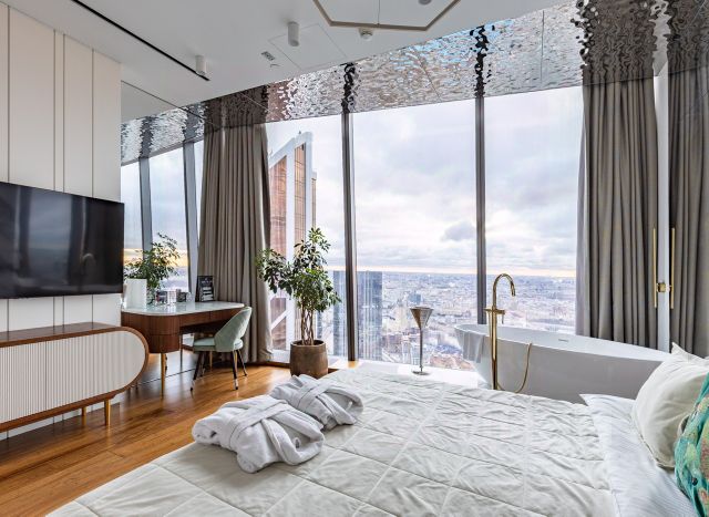 Видовые апартаменты общей площадью 161 м² в комплексе премиум-класса "Федерация". Апартаменты с отделкой расположены в башне "Восток" на 72 этаже. Соединены две студии: одна выполнена в стиле Gucci, вторая — Louise Vuitton. Просторные апартаменты включают: две зоны кухни-гостиной, 2 спальни, две ванных комнаты, 2 гостевых санузла, две гардеробные. Новая отделка, с мебелью и бытовой техникой. Высота потолков 3,5 метра. Конструкция потолков позволяет установить воздушные перегородки и зонировать пространство. Из окон открываются виды на город в сторону Парка Победы. Главное о доме. "Федерация" — два небоскрёба в Москва-Сити: 97-этажная "Восток" и 63-этажная "Запад". Смещённые кубы фасадов и стеклянная графика создают футуристический силуэт делового центра. Внутри — атриум под стеклянной крышей, отдельные дизайнерские лобби для жителей, рестораны и галереи. На 61 этаже работает wellness-клуб Nebo с панорамным бассейном, на верхних уровнях — пентхаусы с двойным светом и стеклянным куполом, из окон которых открываются панорамы Москвы на высоте облаков. На первых этажах — торговые пространства, кафе и сервисы; подземная галерея соединяет башни с "Афимоллом". Главное о локации. Москва-Сити живёт круглосуточно: днём здесь деловые встречи и обеды в ресторанах башен, вечером — коктейли в Sixty и концерты в "Экспоцентре". Для прогулок рядом парк Красная Пресня и набережная Москвы-реки. В пешей доступности — школы 2030 и 56 имени Легасова, детский сад 2112 и частная Discovery Primary School. За пять минут жители попадают в "Афимолл" с сотнями магазинов и кинотеатром, а по подземной галерее легко добраться, не выходя на улицу. До Кремля — всего 10 минут на машине, а на МЦК "Деловой центр" можно сесть на аэроэкспресс до Шереметьево. Комментарий эксперта. Меня зовут Лариса Шефель — брокер компании Whitewill. Я отвечаю за продажу этого лота. Свяжитесь со мной, чтобы получить расширенную презентацию, больше фотографий или договориться о просмотре. Могу провести экскурсию по локации и познакомить вас с этим домом. ID 316 660. Купить 2-комнатную квартиру 2-комнатных квартир в Башня Федерация в Москве.