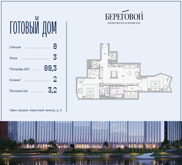 Река. Парк. Сити. Готовый дом в идеальном месте. Продается 2-комнатная квартира на 11 этаже с панорамным остеклением и видом на Береговой пр-д. Береговой — квартал-курорт в центре столицы. Готовый дом на первой линии Москвы-реки. Пешеходная набережная начинается прямо от дома — никаких дорог между вами и рекой. Уникальное сочетание природы парка Фили и ритма Сити. Ключи от нового образа жизни в Береговом: • 12 террас на крышах — ваши виды на Москву с высоты птичьего полета • Пешеходная набережная прямо у дома — ни одной машины между вами и рекой • Лобби с камином, переговорной и консьерж-сервисом • Флагманский Encore Fitness — самый большой в сети (4700 м²) с бассейном, термами и спа-комплексом • Детство на берегу Москвы-реки — в рамках проекта будут построены две школы и детский сад рядом с домом • Гастрономическая набережная: рестораны и премиум-сервисы откроются на первых этажах • Причал "Береговой" рядом с домом — путешествуйте по городу, пока другие стоят в пробках • Безопасность и уединение: контроль доступа на территорию, видеонаблюдение и круглосуточная диспетчерская • Двухуровневый подземный паркинг и кладовые Безупречная квартира для жизни: • Пространство света и воздуха: панорамные окна и высокие потолки 3.2 м • Технологии: центральное кондиционирование и роботизированная система очистки фасадов — вид из окна всегда будет идеальным • Совершенство планировки: просторная кухня-гостиная, минимум коридоров, максимум полезной площади • Квартира без отделки — возможность раскрыть преимущества планировки в вашем уникальном интерьере. Или выбирайте свою версию идеального дома в коллекции планировок: • С изолированными спальнями • Мастер-спальнями с гардеробными и ванными • Видовые ванные комнаты • Функциональные постирочные Эксклюзивные лоты: • Пентахусы с приватными террасами • Двухуровневые пентхаусы Локация, о которой мечтают 15 минут до Сити на машине — и вы в эпицентре деловой жизни. Две станции метро в пешей доступности — когда каждая минута на счету. Утром — пробежка по парку Фили, вечером — прогулка на велосипеде вдоль реки, выходные — водный спорт в Крылатском. Речные трамвайчики вместо такси, зеленые парки и благоприятная экология — привилегии престижного ЗАО Москвы. Условия покупки: выгодные программы покупки от застройщика, специальные условия при полной оплате. Оставляйте заявку на персональную презентацию в шоу-руме.