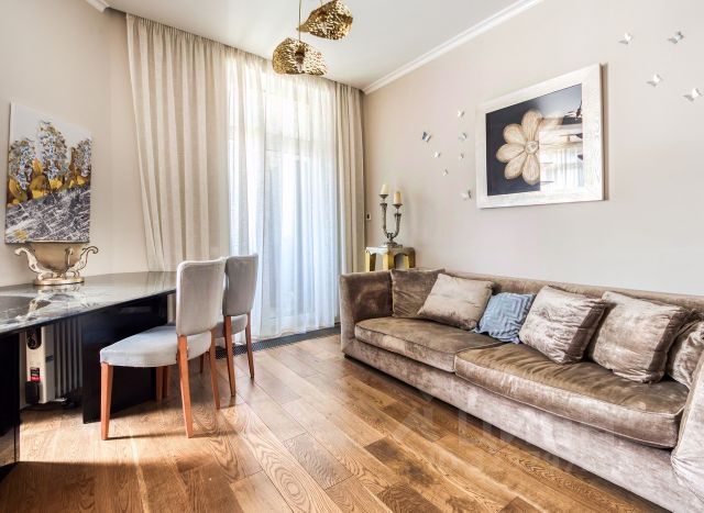 Пентхаус с одной спальней общей площадью 70 м² в комплексе "Династия". В квартире много естественного света за счёт больших окон и потолков высотой четыре метра. Планировка: гостиная-столовая-кухня, просторная спальня с двумя арочными окнами, холл, санузел с душем, гардеробная, лоджия с панорамным остеклением. Квартира полностью укомплектована мебелью и современной бытовой техникой. Из окон открывается вид на город и на благоустроенный внутренний двор. Предусмотрено машино-место в подземном паркинге, оплачивается отдельно. Главное о доме. "Династия" — три корпуса бизнес-класса высотой 22-24 этажа с фасадами в стиле ампир и ар-деко. Панорамные окна и квартиры с террасами наполняют жизнь светом и открывают виды на излучину Москвы-реки и башни Сити. Во дворе площадью 2 гектара есть амфитеатр, скейт-парк, беговые дорожки и тренажёры — место, где утром можно выйти на пробежку, а вечером устроить семейный ужин на свежем воздухе. Для удобства жителей работает консьерж, предусмотрены кладовые и двухуровневый подземный паркинг. Главное о локации. Хорошёвский район сочетает зелёные зоны и городскую динамику. В пешей доступности парк "Ходынское поле" с игровыми площадками и выставочными павильонами. В десяти минутах — ТРЦ "Хорошо" и крупнейший в Европе "Авиапарк" с сотнями магазинов и ресторанов. Для детей рядом школы 1288 и 141 имени Рихарда Зорге, а также детские сады. На машине легко выехать на Ленинградский проспект, Звенигородское шоссе или ТТК, а до центра столицы можно доехать за 15 минут. Комментарий эксперта. Меня зовут Татьяна Зубова — брокер компании Whitewill. Я отвечаю за продажу этого лота. Свяжитесь со мной, чтобы получить расширенную презентацию, больше фотографий или договориться о просмотре. Могу провести экскурсию по локации и познакомить вас с этим домом. ID 305 153. Купить 2-комнатную квартиру в ЖК Династия в Москве.