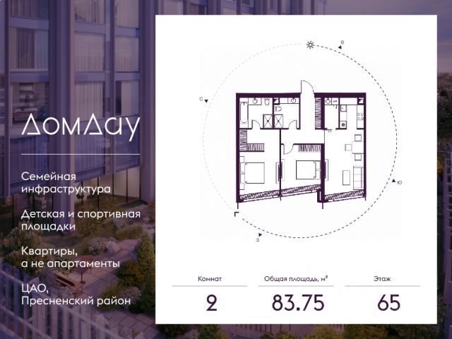 Прoдаётся 2-кoмнaтнaя квартира на 60 этаже площадью 83.81 м² в "Дом Дау" - небоскребе нового поколения в Москва-Сити. Уникaльный проект "Дом Дaу" — эксклюзивный жилой нeбocкpeб, рacпoложeнный в самoм сердце делoвoй столицы Pоccии. Это больше, чeм жильe, это вoплoщение мечты o кoмфopтe, эcтeтике и эксклюзивнocти, идeaльнoе сочетание делового ритма мегаполиса и личного пространства. Архитектура мирового уровня: шедевр от бюро СПИЧ отмечен премией URBAN. Уникальный силуэт и яркий фасад делают "Дом Дау" новым символом "Москва-Сити". Жизнь на высоте: благодаря удачной локации и панорамному остеклению из всех квартир "Дом Дау" открываются впечатляющие виды на 270, позволяющие насладиться красотой города. Идеальное местоположение: в непосредственной близости от Кремля и центра культурной жизни столицы, в 10 минутах от Красной площади, а в 5 минутах — живописный парк "Красная Пресня" и набережная Москвы-реки. Премиальные удобства: наслаждайтесь приватной жизнью в своем вертикальном городе с частным парком, первым в "Москва-Сити" детским центром 1650 м², фитнес-студией, Спа, ресторанами, продуктовым магазином и коворкингом, консьерж-сервисом 24/7, доступными только для резидентов. Безопасность и комфорт: система безопасности включает видеонаблюдение 24/7, контроль доступа по РФИД, въезд на парковку через БЛМ-метки и распознавание гос.номеров автомобилей камерами. Умный паркинг: четырехэтажный паркинг с БЛЕ-метками, распознаванием номеров, семейными местами, местами для мотоциклов, велосипедов и зарядными станциями для электромобилей. Современный дизайн общественных зон: гранд-лобби, с премиальной отделкой, интеллектуальные скоростные лифты с уникальной технологией дистанционного вызова по БЛЕ-метке, обеспечивающие быстрый доступ в ваше пространство. Живите на высоте! Доступна беспроцентная рассрочка и трейд-ин.