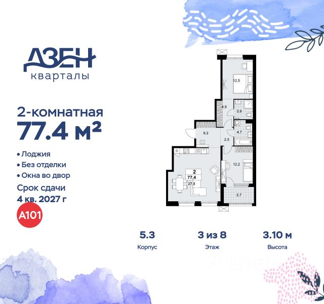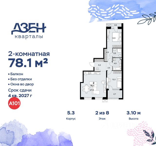 Продается двухкомнатная квартира 342 в новостройке ЖК "Дзен-кварталы" по адресу Москва, ТиНАО, Новомосковский АО, Сосенское С/П, Москва, Новомосковский административный округ, район Коммунарка, квартал 160, 1Вк3. Общая площадь квартиры - 54.40 кв. м., этаж 4 из 12, секция 8. Тип проекта, по которому построен дом - монолит, компания-застройщик - ООО "А101". Стоимость квартиры - 19359328 Р. Срок сдачи - 4 квартал 2027. ПРЕДЛОЖЕНИЯ ОТ ЗАСТРОЙЩИКА В ФЕВРАЛЕ 2026: Скидки до 10% на все квартиры. Только в офисах продаж до 28 февраля. Ипотека от 13,9 % для всех! На весь срок. "Семейная ипотека" вернулась. Ставка от 3,5 % на весь срок! Без удорожания! Выгодное ипотечное комбо: Ипотека от 2200 р./мес. и от 6 % после рождения ребёнка! Ипотека для всех "Держи пять!" - ставка 5 % на 2 года! *более подробную информацию по скидкам и акциям уточняйте в отделе продаж ЖК "Дзен-кварталы" на юго-западе Москвы расположен вдоль берегов Ивановского пруда и реки Варварки, гармонично сочетает насыщенную городскую инфраструктуру и мягкое умиротворение природы. Архитектурные решения домов стандарт-, комфорт- и бизнес-класса переменной этажности объединяют скандинавскую функциональность и утонченный японский минимализм. Район отличается высокой транспортной доступностью - всего 5 минут пешком до станций метро "Новомосковская" и "Потапово". Кварталы с собственной благоустроенной набережной, парками, тихими дворами без машин, зелёными скверами располагают к спокойному созерцательному отдыху. На первых этажах откроются магазины, спортивные залы, поликлиники, аптеки, кофейни, пекарни, фитнес-залы, салоны красоты. В районе появится собственная школа, расположенная у воды, и 2 детских сада. В декоре лобби использованы японские мотивы - отделка стен светлым деревом и натуральным камнем. На подземных этажах расположены паркинги и кладовые. Преимущества "Дзен-кварталов" - ст. метро "Новомосковская" и "Потапово" - 5 мин. пешком - удобный выезд на трассу Солнцево - Бутово - Варшавское шоссе - уникальное благоустройство в стиле Japandi - благоустроенная набережная - насыщенная инфраструктура