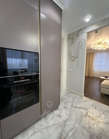 В комнатах, кухне и коридоре ламинат, в санузле плитка на полу. Стены в кухне под покраску, в комнатах, коридоре обои. Потолки натяжные.