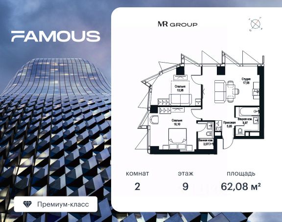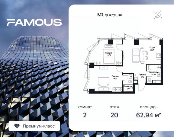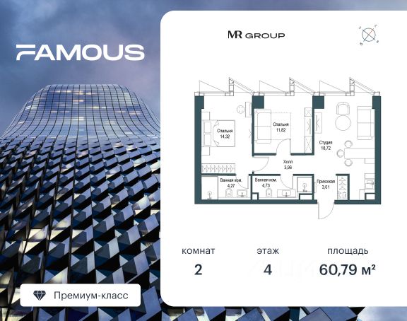 Прямая продажа от застройщика. Продаётся 2-комнатная квартира площадью 61.30 м² с предчистовой отделкой на 7-м этаже премиального небоскреба Famous. Срок ввода в эксплуатацию - IV кв. 2024 г. Выдача ключей - III кв. 2025 г. Если к слову "будущее" подобрать архитектурный синоним, им непременно станет премиальный небоскреб Famous. Он расположен в закрытом квартале "Фили Сити" - настоящем городе в городе, окруженном зеленым ореолом из аллей и скверов, с инфраструктурой для жизни и отдыха самых взыскательных горожан. Резидентов Famous ждет особая привилегия - открывающиеся из окон бескрайние панорамы, с видами на парк Фили, Поклонную гору, Москва-реку и Москва-Сити. Эффектный ультрасовременный 57-этажный небоскреб, пластичный в нижней части, наверху трансформируется и взмывает ввысь выразительной скульптурой с обтекаемой поверхностью. Фасад украшенный стеклянными эркерами в виде прямых треугольных призм, словно олицетворяет собой идеально собранный пазл. Это безупречное решение для тех, кто не боится лидерства и высоты, не ищет простых путей, держит высокую планку во всем, не останавливается на достигнутом и живет в ритме мегаполиса. Не зря логотип Famous украшает графический элемент Триумфальной арки на Кутузовском проспекте - символ успеха и жизненных побед. Особенности дома: - Проект премиум-класса рядом с центром Москвы - Футуристическая авторская архитектура от бюро ADM - Ультрасовременные инженерные решения современных небоскрёбов - Элегантное решение орнаментальной композиции фасада от бюро ADM - Famous станет первым проектом в Москве с интерьерами лобби от международной архитектурной компании A ++ - Панорамное остекление по всему фасаду, головокружительные виды на достопримечательности Москвы, парк Фили, Москва-Сити и Поклонную гору - Европейский подход к благоустройству: площадь с фонтанами, парк-променад, детские и спортивные площадки, зоны отдыха - Продуманная концепция инфраструктуры: уютные кафе и рестораны, супермаркет, фитнес-студия, службы сервиса, детский центр развития - Эргономичные планировки от бюро Олега Клодта Транспортная доступность: - Удобный выезд на Кутузовский проспект и ТТК - В пешей доступности станции метро "Фили", "Багратионовская" и "Парк Победы" Компания MR Group предлагает своим клиентам специальные условия приобретения квартир в рамках программ ипотечного кредитования от банков-партнеров.
