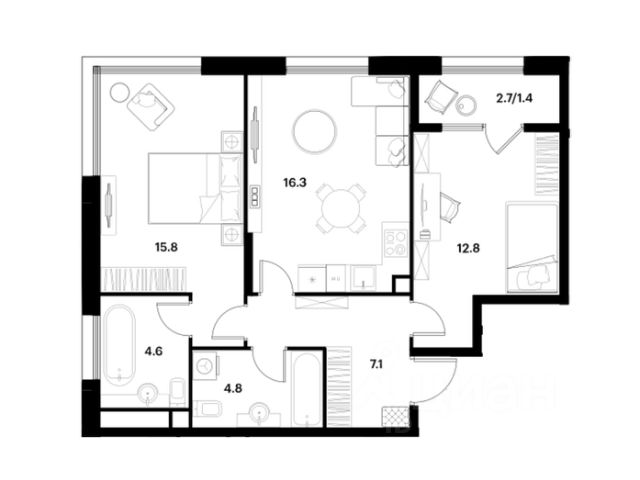 • вторая спальня свободного назначения с панорамным угловым окном: детская, подростковая, кабинет.
