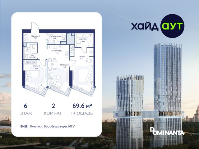 Прямая продажа от застройщика! Продается 2-комнатная квартира площадью 66.6 кв.м. на 20-м этаже 49-этажного дома в жилом комплексе ХАЙДАУТ с панорамными видами: Парк Победы, Долина реки Сетунь, МГУ, Москва-Сити, Воробьевы горы. Высота потолков 3,25 м. В ХАЙДАУТ доступны различные условия покупки — от специальных предложений при полной оплате до комфортных программ рассрочки и индивидуальных ипотечных решений. ХАЙДАУТ — премиальный проект компании Dominanta. Это новый уровень жизни и комфорта без компромиссов. Две башни — 34 и 49 этажей — открывают захватывающие виды на Москву. Архитектурной доминантой проекта становится мост, соединяющий башни на высоте 80 метров. Закрытая территория, охрана 24/7, зона экстренной безопасности на подземном уровне, система пожаротушения. На мосту между башнями на 22-м этаже находится общественное пространство SocialHUB — предусмотрено 16 комфортных пространств для работы, отдыха и развлечений с панорамными видами и клубным форматом доступа. Концепция благоустройства ХАЙДАУТ — баланс между природой и технологичным городом будущего. На территории сада предусмотрены 15 зон для отдыха, работы, спорта и детей. Знаковым местом станет центральная площадь с амфитеатром и водопадом — сочетание камней, растений и струящейся воды создает идеальный баланс с природой. Застройщик АО "СЗ "ХАЙДАУТ", ИНН 7729058636, ОГРН 1027739319420. Проектная декларация на сайте наш.дом.рф. Предложение не является публичной офертой.