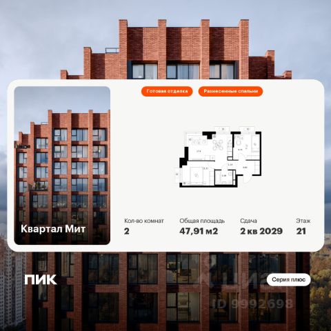 • ✓ В базе Циан 57 2-комнатных квартир в ЖК Квартал Мит в Москве