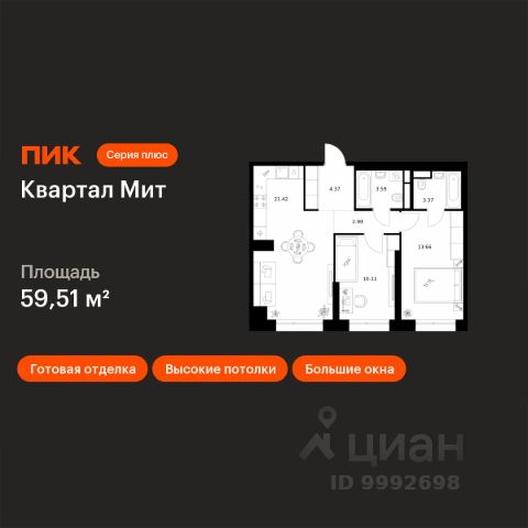 Продаётся 2-комн. квартира площадью 45,82 кв.м на 14 этаже 21 этажного дома (Корпус 3.6, Секция 9) проекта ПИК Квартал Мит. Светлый просторный подъезд на уровне земли, функциональная планировка, большие окна, c отделкой. "Квартал Мит" строится в экологически чистом районе Митино, где по соседству расположен большой лесопарк, а с двух сторон протекают реки Сходня и Журавка. Для семей с детьми здесь появится школа и два детских сада. В 20 минутах пешком находится станция метро "Пятницкое шоссе", а за 10 минут на автомобиле можно доехать до МКАД. Архитектура от архитектурного бюро "Слава+" Концепция квартала сочетает эстетику и функциональность. Башня-доминанта цвета красной охры и разновысотные корпуса терракотового, белого и графитового оттенков формируют узнаваемый силуэт современного городского пространства. Просторные террасы, разнообразные балконы и окна в пол придают облику динамичность и дарят квартирам уютные места для отдыха. Первые этажи с панорамными окнами создают сцену для яркой городской жизни. Здесь появятся пространства для прогулок, летние террасы, рестораны и коммерческие помещения. Комфорт "Серии плюс". При входе в дом жителей встретят светлые просторные лобби с высокими потолками — попасть сюда можно как со стороны улицы, так и со двора. В лобби будет зона ожидания, велосипедная и колясочная. Быстро и с комфортом подняться на нужный этаж помогут бесшумные скоростные лифты. На подземном этаже появится паркинг и индивидуальные кладовые, где удобно хранить сезонные вещи. Артикул 1035558 (Застройщик АО СЗ "ПФК")