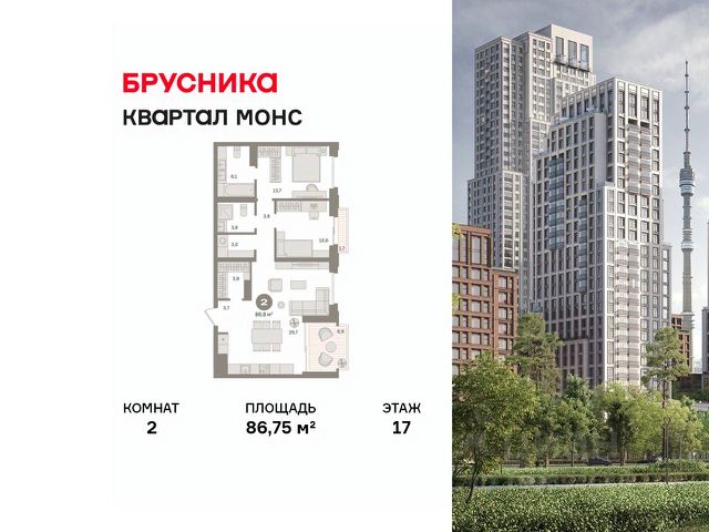 Квартира с кухней-гостиной и двумя спальнями в квартале "МОНС". Особенности планировки: окна на две стороны, окна в пол, панорамное остекление, разнесённые спальни, предчистовая отделка, терраса, терраса на крыше. Квартиру можно купить онлайн. В квартире выполнена отделка "под чистовую". Установлены окна с двойным стеклопакетом, радиаторы с терморегуляторами. На полу цементно-песчаная стяжка. В квартиры заведены кабели для интернета и ТВ. Входная сейф-дверь не требует замены. Организован поквартирный учёт энергоресурсов (водоснабжение, отопление, электричество). Квартал "МОНС" пронизан атмосферой локации, её энергетикой. Она воплощена в общей композиции, чистоте её форм, в графичных и динамичных силуэтных линиях. Пять домов от 2 до 45 этажеи поддерживают идею монументальности и одновременной лёгкости, но при этом у каждого из них сформировался свой характер. "Игра" с разными высотами, текстурой и формой фасадов позволила запустить в квартиры и дворы больше света, сделать пространства между домами проницаемыми и воздушными. Застройщик — компания Брусника. Инфраструктура квартала "МОНС" включает детское образовательное учреждение, магазины, предприятия услуг и офисные помещения. В шаговой доступности находятся: парки ВДНХ и Останкино, школа и детский сад, супермаркеты Перекресток и Вкусвилл, фитнес-клубы, студии растяжки и йоги. Объявление от застройщика. Ипотека, материнский капитал. Обмен — один из способов покупки. Обмен подойдёт, если вы хотите быстро поменять старую квартиру на новую. Получить ипотеку или рассрочку, а также обменять квартиру можно онлайн. Запишитесь на онлайн-презентацию по телефону или на сайте. квартиры в нашей базе: МОН01-Ж4.23.7.