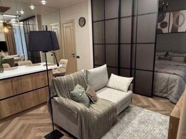 Квартира состоит из - уютная изолированная спальня, с большим высоким гардеробом, разными видами освещения; светлый зал/студио с полноценным раскладывающимся диваном, с отдельностоящей обеденной зоной; зона кухни с мебельным гарнитуром класса люкс, выполнена из натурального шпона, включая фурнитуру Blum, со встроенной качественной техникой известных брендов - встроенный холодильник, варочная панель, дизайнерская вытяжка подключенная напрямую в вытяжную вентиляцию, встроенная стиральная машина, столешница выполнена на заказ из натурального мрамора Imperador Gold, стеновая панель из штучной итальянской плитки; ванная комната выполнена с использованием итальянской эксклюзивной штучной плитки, установлен тропический душ, встроенная сантехника, есть душ биде. Телевизор Philips со Смарт-ТВ высокого разрешения 4К, и умной подсветкой Ambilight, установлен высокоскоростной интернет, умное освещение, система кондиционирования Electrolux. Дорогостоящая мебель, предметы интерьера и дизайна, гипсовая лепнина, итальянские светильники. Для хранения вещей предусмотрены - гардеробная, полноценный шкаф при входе, также большой шкаф в спальне, шкаф в санузле, кровать с подъемным механизмом. В ЖК есть двухуровневая парковка, и вся необходимая инфраструктура (магазины, супермаркеты, открывается фитнес-клуб, кафе, рестораны, и многое другое)