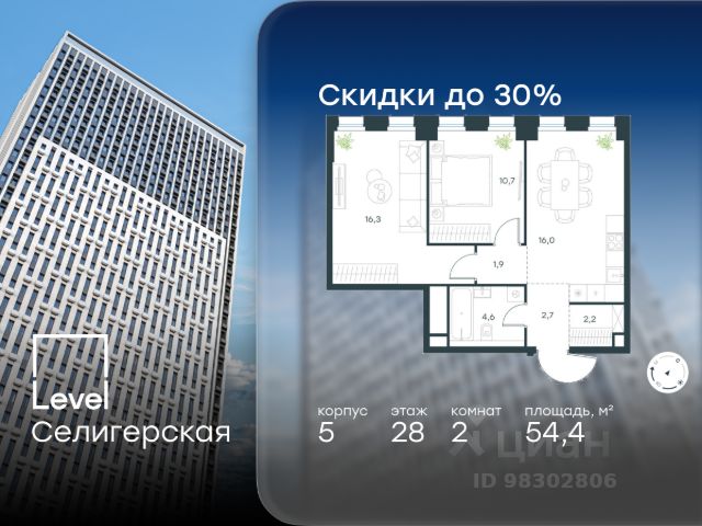Цена указана с учётом скидки при 100%-й оплате, несубсидированной ипотеке, рассрочке (кроме программы "Рассрочка 0%"). В жилом квартале, расположенном в южной части района Западное Дегунино, продаётся 2-комнатная квартира площадью 51.30 кв.м без отделки. Квартира расположена на 35 этаже 40-этажного корпуса 3 в жилом комплексе комфорт-класса Level Селигерская (компания Level Group/Левел групп). Отличная транспортная доступность: - 10 мин. пешком до станции метро "Верхние Лихоборы"; - 15 мин. пешком до станции метро "Селигерская"; - 20 мин. пешком до станции МЦД-3 "Моссельмаш"; - 11 мин. на авто до МКАД; - 13 мин. на авто до ТТК; - 16 мин. на авто до Садового кольца. Расположение Район отличается богатой социальной инфраструктурой: школы, детские сады, поликлиники, магазины, фитнес-клубы, торговые центры - всё близко к дому. Рядом с Level Селигерская расположено 5 парковых зон. В 3 минутах от дома расположен перспективный сквер-парк. В 10 минутах пешком находится парк им. Святослава Фёдорова, в 13 минутах на велосипеде - парк "Ангарские пруды". В 7-11 минутах на автомобиле - два крупных природных объекта: Тимирязевский парк и Главный ботанический сад Российской академии наук. Благоустройство Внутренние дворы жилого комплекса огорожены от машин, а их функциональное наполнение отличается в зависимости от очереди строительства. На территории 2-й очереди жителей ждут уютные навесы с качелями, павильон-читальня, волейбольная площадка, беседки, а также детские и спортивные площадки. Технологии и инженерия Для входа на территорию комплекса предусмотрен единый ключ доступа. Все общественные зоны оснащены камерами видеонаблюдения, по заявке собственнику предоставляется возможность просмотра изображения отдельных видеокамер на его мобильном устройстве. При въезде в паркинг функционирует система распознавания госномеров. Кроме того, для комфорта жителей создано мобильное приложение, с помощью которого можно удаленно контролировать доступ на придомовую и жилую территории. Другие преимущества жилого комплекса - Высокая освещённость квартир: в большинстве из них не менее трёх окон; - Супермаркет, магазины, кафе, пекарни и многое другое на первых этажах домов; - Частный детский сад; - Стильные дизайнерские лобби с высокими потолками до 4,3 м. и окнами в пол, для питомцев предусмотрена лапомойка; - 30+ планировочных решений: от компактных студий до просторных семейных квартир; - С каждого этажа дома на лифте можно спуститься в подземный отапливаемый паркинг."