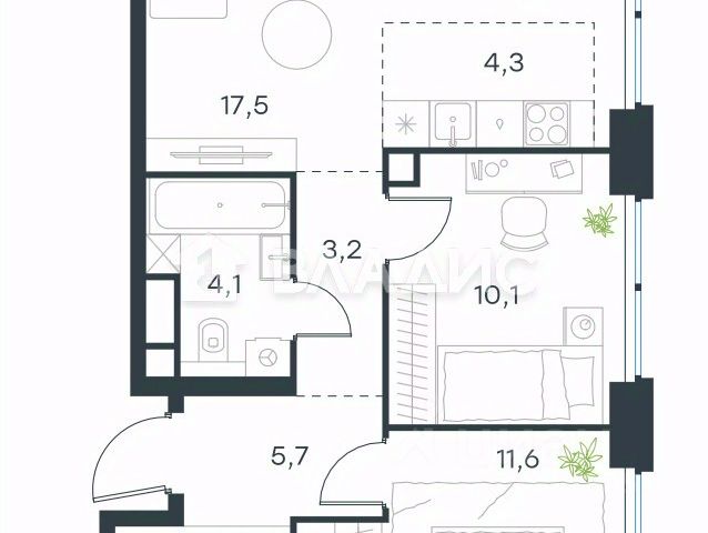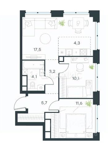 Цена указана с учётом скидки при 100%-й оплате, несубсидированной ипотеке, рассрочке (кроме программы "Рассрочка 0%"). В жилом квартале продаётся 2-комнатная квартира площадью 36.80 кв.м без отделки. Квартира расположена на 3 этаже 64 этажного корпуса 2 в жилом комплексе комфорт класса Левел Звенигородская (компания Level Group/Левел групп). Отличная транспортная доступность - 5 мин. пешком до метро "Звенигородская" (откроется к окончанию строительства); - 18 мин. пешком до станции МЦК "Хорошёво" и станции БКЛ "Народное ополчение"; - 4 мин. на авто до ТТК; - 8 мин. на авто до Садового кольца; - 15 мин. на авто до Кремля. Продуманный архитектурный проект - Концепция от студии Станислава Михаловского, в основу которой легло единение природы и города; - Двухкамерные стеклопакеты в окнах, алюминиевый и ПВХ профиль - в квартирах тепло зимой и прохладно летом; - С верхних этажей открываются панорамные виды на город, Москву-реку, "Москва-Сити" и Москворецкий парк; - Лобби со всеми удобствами: окна в пол, высокие потолки до 4,7 м, лаунж-зоны, колясочные, гостевые санузлы и мойки для лап животных; - Централизованные водонагреватели гарантируют круглогодичную подачу горячей воды в каждую квартиру. Благоустройство Концепция благоустройства разработана совместно с бюро UNK landscape. Высота башен приближается к 200 метрам - они словно касаются неба. Небесный простор проецируется на территорию двора с помощью подсветки, визуально увеличивая пространство и отражаясь в авторских элементах архитектуры. На территории площадью 0,45 га расположатся: - "Облако событий" - место встреч и общения; - "Облако спорта" - всё для поддержания себя в форме; - "Облако принятия решений" - пространство для работы на свежем воздухе; - "Облако спокойствия" - для отдыха в тишине природы; - "Облако игр" - площадки для подростков и самых маленьких. Инфраструктура В жилом комплексе откроется 21 коммерческое помещение: продуктовые лавки, кафе, салоны красоты, службы доставки и творческие студии. Этап 1 включает строительство двухуровневого подземного паркинга. Всего здесь расположится 351 машино-место, включая семейные места, и 264 кладовых помещения. В распоряжении жителей развитая инфраструктура района: 15 супермаркетов, 5 спортивных объектов, 9 медучреждений, 7 детских садов, 4 школы, 3 благоустроенных парка - всё в шаговой доступности. Инженерия Комфортное перемещение внутри домов будут обеспечивать надёжные лифты с доступом в паркинг с жилых этажей. В каждом корпусе предусмотрено до шести кабин, включая сервисные лифты. Попасть на территорию комплекса можно только по единому ключу доступа. Видеонаблюдение установлено на входах в подъезды, в лобби, в общих зонах, на въезде в паркинг. Гости смогут связаться с жителями дома через входные видеопанели, а управлять доступом на территорию можно через видеодомофон или приложение на телефоне.