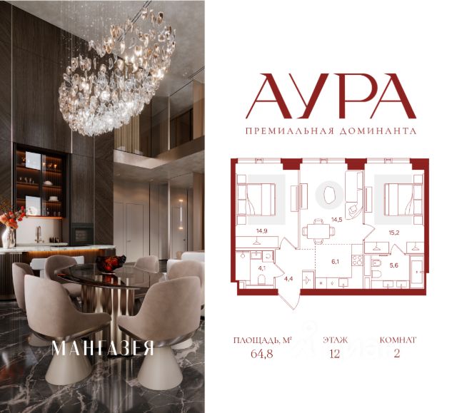 2-комнатная квартира площадью 64.80 м2. Высота потолков 3.32 м. Этаж 5 из 42. Вид из окон - в свой двор. О проекте АУРА новая премиальная доминанта Москвы в 10 минутах от Садового кольца. Проект состоит из 42-этажной Бронзовой башни и 41-этажной Серебряной. Рядом набережная Москвы-реки, Даниловский рынок, музеи и галереи, престижные школы и вузы. Двор и благоустройство Приватная территория АУРЫ состоит из нескольких функциональных зон для тихого отдыха, работы и активного времяпрепровождения на свежем воздухе. На нижнем уровне расположены детские и спортивные площадки, скалодром и крытый павильон для подвижных игр. Выше — амфитеатр для отдыха и вечерних променадов, уличный коворкинг с мебелью и лаунж-зоны с лежаками у воды. На крыше — тихий уголок для занятий йогой, встречи рассветов и наслаждения закатами. По всему двору проложены пешеходные дорожки с подогревом в зимний сезон. Придомовую территорию АУРЫ украсит уникальный для Москвы объект — скала из натурального камня с водопадом, которая станет новой городской достопримечательностью. Эксклюзивная инфраструктура Только для резидентов: • Бьюти-комната; • Коворкинг, переговорные и акустические кабинеты; • Детская игровая комната; • Спортзал и студия для тренировок; • Просторные колясочные; • Сервисная комната; • Лапомойки для домашних питомцев. Инфраструктура в составе проекта: • Ресторан авторской кухни; • Современная медицинская клиника; • Частный детский сад; • Бизнес-центр класса "А"; • Коммерческие помещения, закрывающие любые потребности — супермаркет, химчистка и др. Атрибуты комфорта • Индивидуальная вентиляция квартир; • Вентиляция с очисткой воздуха в общих зонах; • Мультизональное центральное кондиционирование; • Горячая вода круглый год; • Вода качества, сопоставимого с питьевой; • Усиленная звукоизоляция квартир. Входные группы • Гранд-лобби в стиле современной роскоши; • Дизайнерские лобби в каждой башне; • Панорамное остекление. Квартиры Более 40 планировок: от уютных студий до просторных семейных лотов. Всего 916 квартир площадью от 28,1 до 148,8 м². Высота потолков от 3,16 до 6,2 м. Уникальные планировки: • Квартиры с террасами; • Квартиры с окном в ванной; • Квартиры с круговым остеклением; • Двухуровневые пентхаусы. Паркинг и келлеры Двухуровневый подземный паркинг на 563 парковочных места: • Постоянные места: 496 (в том числе 48 мест для маломобильных); • Гостевые места: 67; • Персональные кладовые и велостанция; • Мойка автомобилей; • Станция для подкачки шин; • Зарядки для электромобилей; • Зона для разгрузки крупногабаритных предметов. Интеллектуальные системы • Персональный бесконтактный доступ на территорию и в здание по электронному ключу; • Премиальные лифты; • Автоматический въезд на паркинг для резидентов по распознаванию номеров; • Круглосуточное видеонаблюдение с возможностью пуш-уведомлений; • Система датчиков для круглосуточного мониторинга; • Усиленный сигнал связи — стабильный прием сотовой связи и интернета на всей территории.