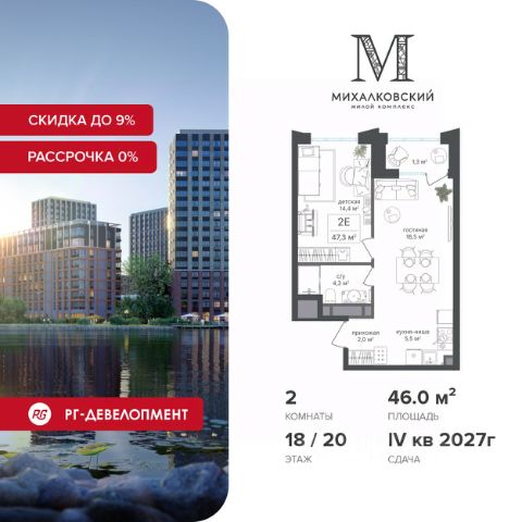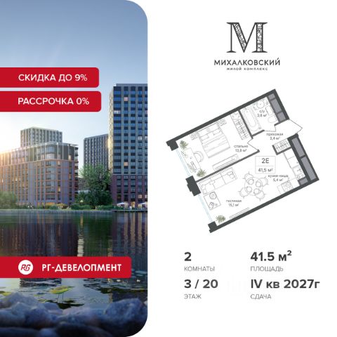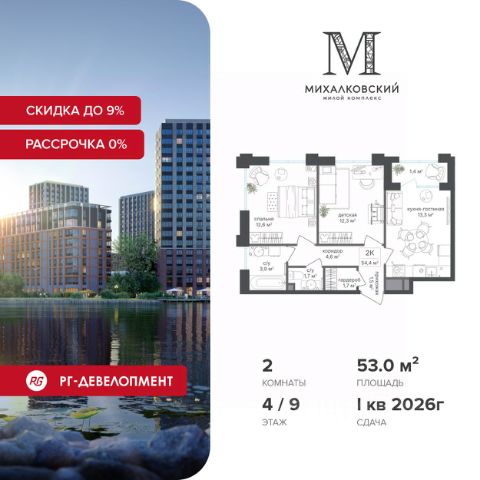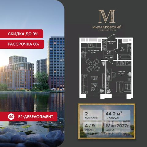 Ипотека для каждого! Полная стоимость кредита от 11,578% до 22,490%. Ставка от 0,11% в АО "Альфа-Банк" фиксируется на 1 год с даты заключения кредитного договора, далее полная стоимость кредита от 25,819% до 28,767% ставка 21,59% до окончания срока кредитования. Первоначальный взнос — от 20% от стоимости квартиры. Срок кредитования — от 3 до 30 лет. Скидка 9% при покупке квартиры! Цена указана с учетом максимального размера скидки. Продаётся 2-к квартира 54,6 кв.м. в ЖК "Михалковский" на 13-м этаже 20 этажного дома. Компания "РГ-Девелопмент" предоставляет скидки на квартиры в жилом комплексе. Акция действительна с 12.09.24 г. до 30.11.25г. включительно. Чтобы воспользоваться предложением, необходимо подписать договор на приобретение недвижимости до 30.11.25г., включительно. Действует программа "Растет семья - растет и квартира". Прямая продажа от застройщика! Старт продаж новых корпусов. Квартиры без отделки. Срок сдачи 1 кв. 2026 г. Особенности проекта: Завораживающие виды Красивое благоустройство Уникальная локация для Москвы (рядом Головинский парк, пруды, усадьба Михалково) Рядом с центром В проекте присутствует: архитектура голландского бюро MLA+, зеленые зоны, транспортная доступность, благоустроенная территория, подземный паркинг, детский сад и выход на Головинский парк с пятью прудами. Название комплекса указывает на одну из его черт - соседство с имением Михалково. Позвольте себе жить в месте, где проводили свой досуг династии Дашковых и Паниных.