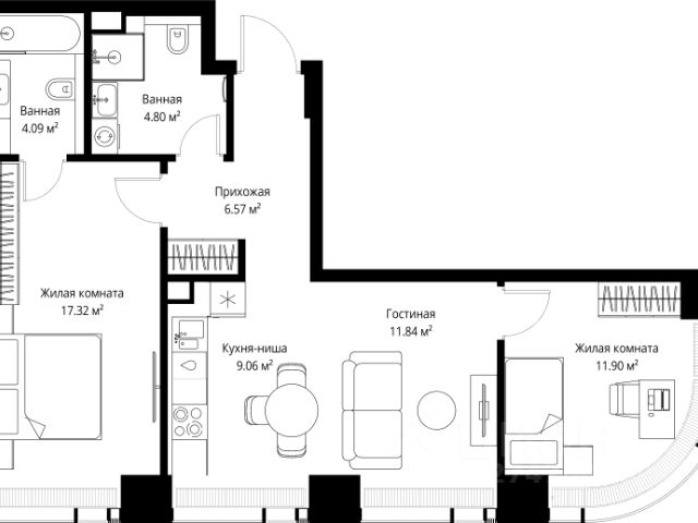 Старт продаж новой очереди! Продаётся 2-комнатная квартира общей площадью 60.07 м² без отделки в ЖК Веер на 2-м этаже 38 этажного дома. Веер.2 — вторая очередь футуристичного квартала бизнес-класса Веер. Это новая экосистема в престижном Западном округе Москвы, поражающая масштабностью внутренней инфраструктуры. ЖК находится всего в 5 минутах от Кутузовского проспекта и в 15 минутах от Сколково. Ансамбль из четырех стеклянных башен с доминантой в 237 метров разработан по принципу современного урбанизма и выражен в лаконичных объемах — параллелепипедах со сглаженными углами, которые придают зданиям утонченный вид. Расположение и транспортная доступность: • Образовательный комплекс в составе топовой школы, состоящий из двух зданий: основное на 1500 школьных и 450 дошкольных мест, отдельное здание детского сада на 300 мест. • Парк "Долина реки Сетунь" площадью более 700 гектаров • Рядом МГУ, МГИМО, РАНХиГС и Академия ФСБ • 15 минут по Кутузовскому проспекту до ужина в центре с видом на Москву-реку • 18 минут пешком до м. "Давыдково" • Открытие новых станций метро в шаговой доступности в будущем Инфраструктура: Двор в Веер.2 — это ассиметричные холмы, каменные "лабиринты", зеленые ковры и хвойные островки с единой живой экосистемой. Здесь есть все: • Павильон умиротворения Место отдыха под навесом в спокойной части двора, окруженное деревьями. • Активная тропа Тактильная дорога из камней разного диаметра для расслабляющих прогулок. • Бизнес-гарден Оборудованное пространство для работы на свежем воздухе со столом и встроенными розетками. • Детская площадка Двухуровневая площадка "Ботаника" с песочницей, переговорной трубой и горкой "Дружба". Компания MR предлагает своим клиентам специальные условия приобретения квартир в рамках программ ипотечного кредитования от банков-партнеров.