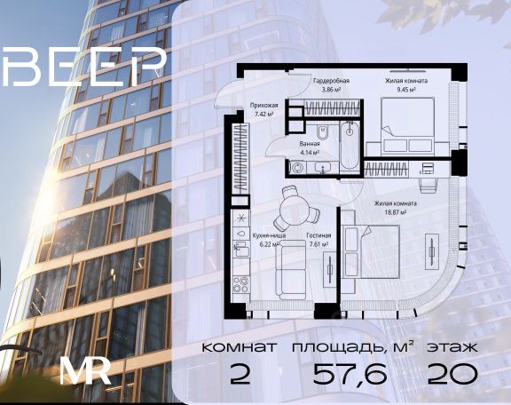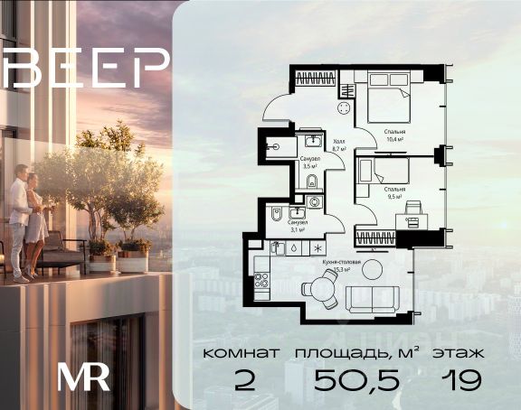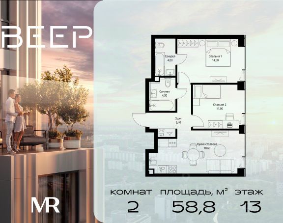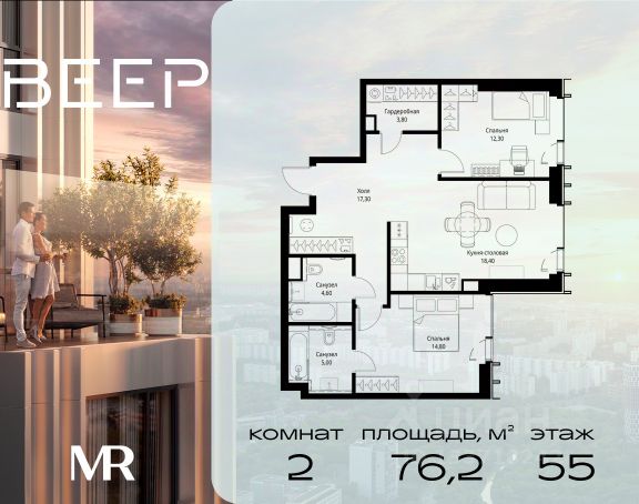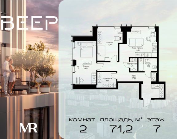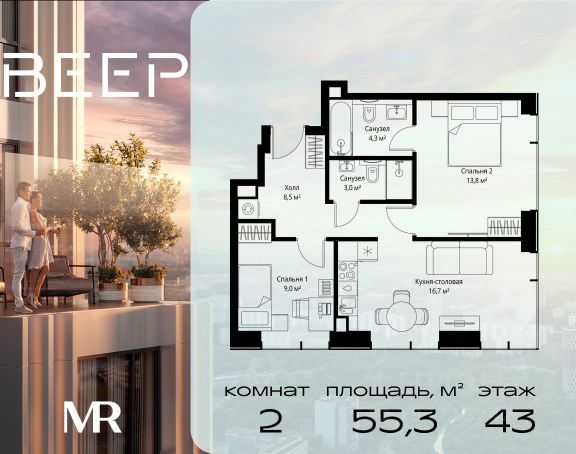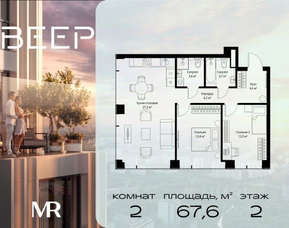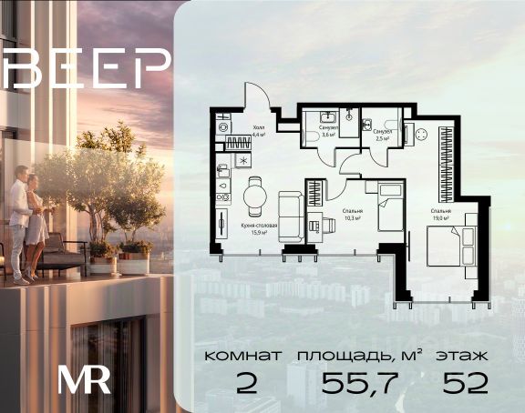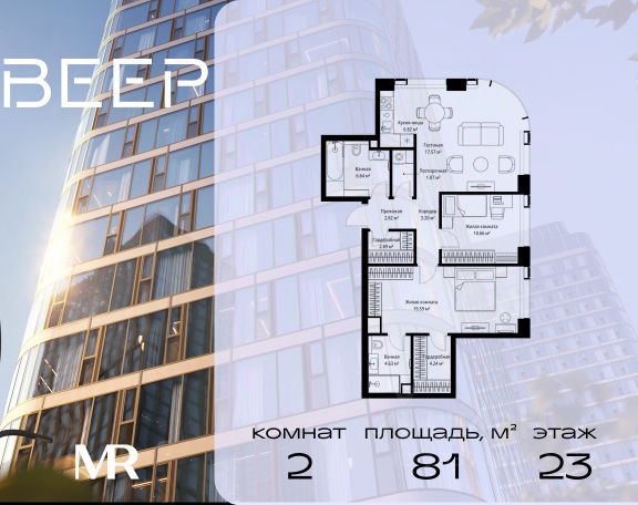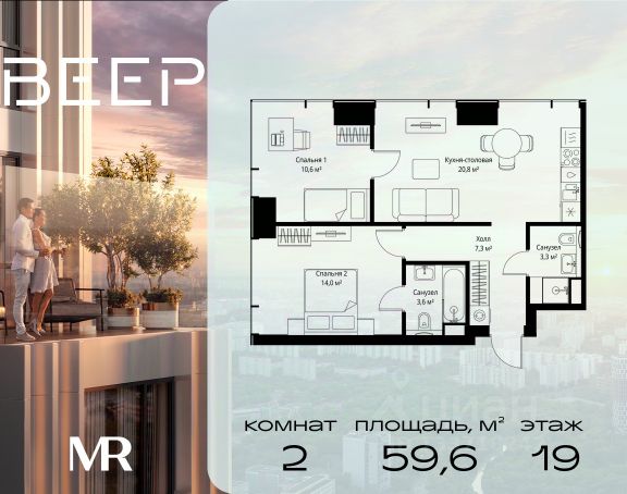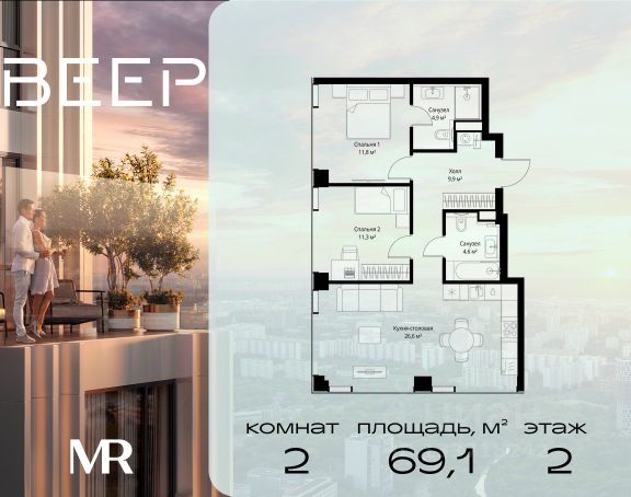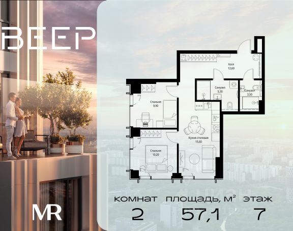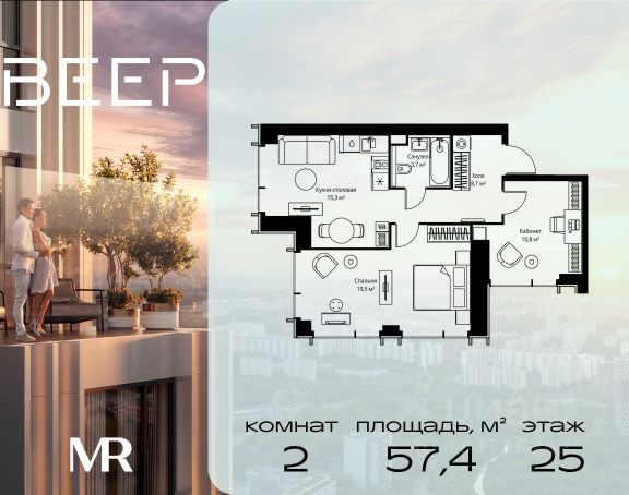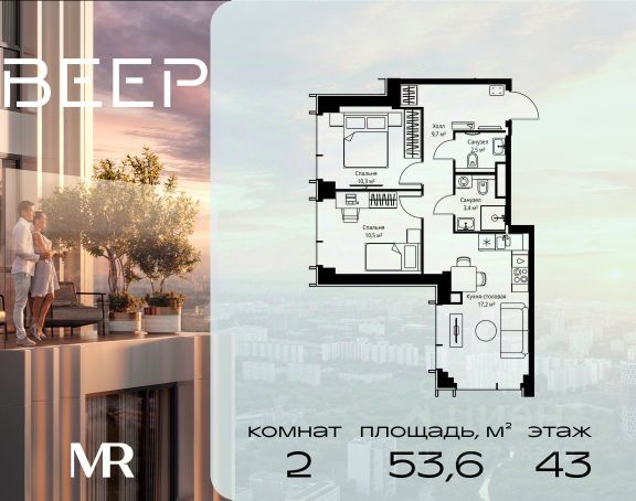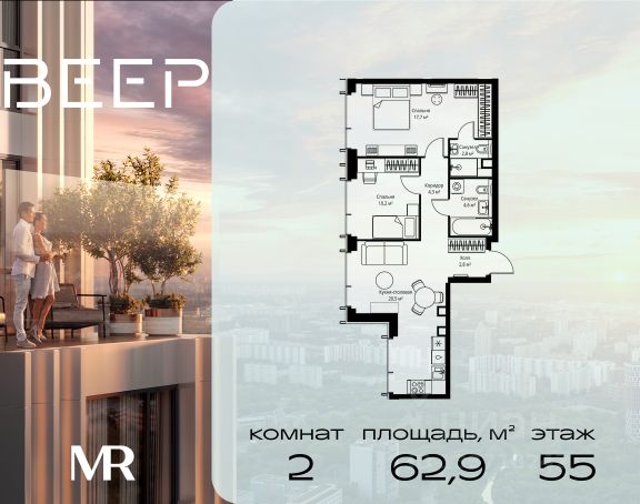 Старт продаж новой очереди! Продаётся 2-комнатная квартира общей площадью 60.22 м² без отделки в ЖК Веер на 21-м этаже 70 этажного дома. ВЕЕР.2 — это вторая очередь жилого комплекса бизнес-класса в престижном ЗАО, где реализована концепция 15-минутного города. Всё, что нужно для комфортной жизни, работы и отдыха, находится в шаговой доступности: офисный и спортивный кластеры, государственная рейтинговая школа 1329 и детский сад, центры творчества, ресторанный бульвар, фитнес и спа-центр с 25-метровым бассейном. • Архитектура и лобби ВЕЕР.2 — это ансамбль из четырёх стеклянных башен от бюро Kleinewelt Architekten, объединённых стилобатом с благоустроенным закрытым двором без машин. Моллированные окна обеспечивают максимум естественного света и ощущение простора. В каждой башне — роскошное лобби от испанского бюро Jaime Beriestain Studio: высокие потолки, обилие живых деревьев, природные материалы и палитра природных оттенков создают атмосферу Люксембургского сада прямо у вас дома. Двухуровневое гранд-лобби с коворкингом и библиотекой станет центром встреч с друзьями и соседями. В каждом лобби предусмотрены лапомойки и просторные колясочные. • Двор и инфраструктура Двор ВЕЕР.2 — это настоящий оазис северной природы: тактильная тропа, сад камней, асимметричные холмы, хвойные островки и павильон для отдыха. Для работы на свежем воздухе — бизнес-гарден, для занятий спортом — пространство для йоги и сайкла. Здесь всё продумано для поддержания гармонии в суете жизни. • Спорт и досуг Трёхуровневый фитнес и СПА-центр на 4000 кв.м с 25-метровым бассейном под прозрачной крышей, кардио- и силовыми залами, а также пространством для групповых занятий — всё это рядом с домом. • Планировки и технологии В комплексе представлены продуманные планировки: панорамные кухни-гостиные, гардеробные даже в небольших лотах, разделение на гостевую и приватную зоны, кладовые при кухнях. Малоэтажные уютные секции с 25 квартирами на этаже и с эксплуатируемой кровлей подойдут тем, кто ищет уединения. ВЕЕР.2 оснащён умной инженерией: скоростные лифты премиум-класса Sword, система считывания номеров в паркинге, гостевой Wi-Fi, приточно-вытяжная вентиляция, внутрипольные конвекторы. Безопасность обеспечивает отдельный вход для курьеров и современные системы охраны. • Парковка и сервис Для жителей предусмотрен удобный двухуровневый паркинг на 736 машиномест с прямым доступом из лобби, зарядками для электромобилей, зонами разгрузки, кладовыми и велопарковками.