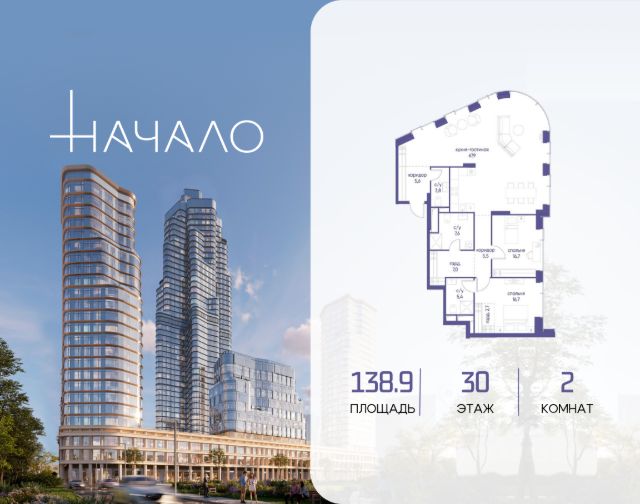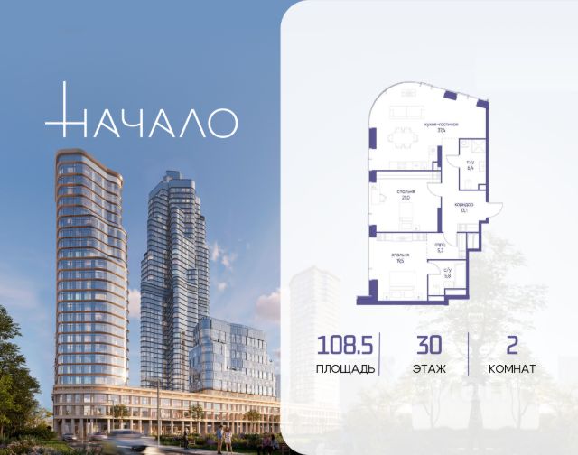В престижном районе Пресня, на перекрестке делового и исторического центров Москвы, продается двухкомнатная квартира площадью 73.70 кв. м без отделки. Квартира находится на 8 этаже 11-этажного дома, в новом элитном жилом комплексе "Начало" от девелопера "Донстрой". Реализация проекта запланирована на 1 квартал 2030 года. Начало - футуристический дом на Пресне в нескольких минутах от Сити и Садового кольца. Проект по-настоящему космического масштаба, где есть все, чтобы раскрыть себя и свои возможности. Расположение Пресня - один из самых престижных районов Москвы. Жить здесь - значит стать частью истории столицы, быть в эпицентре деловой активности города и ощущать, как сама Вселенная вращается вокруг вас. - 5 минут пешком до Красногвардейских прудов; - 15 минут пешком до ст. метро "Улица 1905 года"; - 6 минут на автомобиле до Садового кольца и небоскрёбов "Москва-Сити"; - 12 минут на автомобиле до Кремля. Архитектура как путешествие Как росток пробивает скалу, как растет кристалл, как ракета устремляется ввысь - так формируется архитектурный образ этого дома. Точно выверенный баланс между футуристичными формами и функциональным содержанием дома выводит жизнь в нем на новую орбиту. Стеклянные фасады отражают небо и город, превращая здание в зеркало для окружающего ландшафта. Двор между небом и землёй Просторная территория двора с тремя тематическими зонами отдыха: "Млечный путь" - для детских игр и развлечений; "Космический сад" - для тихого отдыха и релакса; "Метеоритный сад" - для любителей спорта. Открытый променад - сквозной маршрут на крыше стилобата с зонами отдыха, занятий спортом, детских игр и совместной работы. Все площадки плавно связаны между собой прогулочной дорожкой. Теплая кольцевая галерея и мосты над пространством двора - все корпуса "стыкуются", точно модули космической станции. Главный центр притяжения В составе проекта возводится собственный комьюнити-центр, где создана идеальная атмосфера для любых начинаний: - Детский клуб для будущих покорителей Вселенной; - Коворкинги для решения задач планетарного и космического масштабов; - Переговорные для судьбоносных и просто важных встреч; - Лаунжи с атмосферой дзена и релакса; - Библиотека для спокойного чтения; - Кинотеатр для классики и блокбастеров. Территория комфорта и приватности Всё нужное рядом: - Современный образовательный центр со школой и детским садом - для ваших детей; - Фитнес-центр с бассейном - для релакса и борьбы со стрессом; - Ресторанная улица: кафе, рестораны, летние террасы - для деловых обедов и семейных ужинов; - Пекарня и минимаркет в доме - для ежедневных покупок; - Сквер у дома - для неспешных прогулок и спокойного отдыха; - Никаких такси на улице. Машина заберет вас прямо в подземном паркинге вашего корпуса.