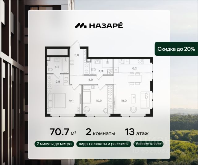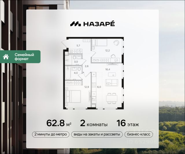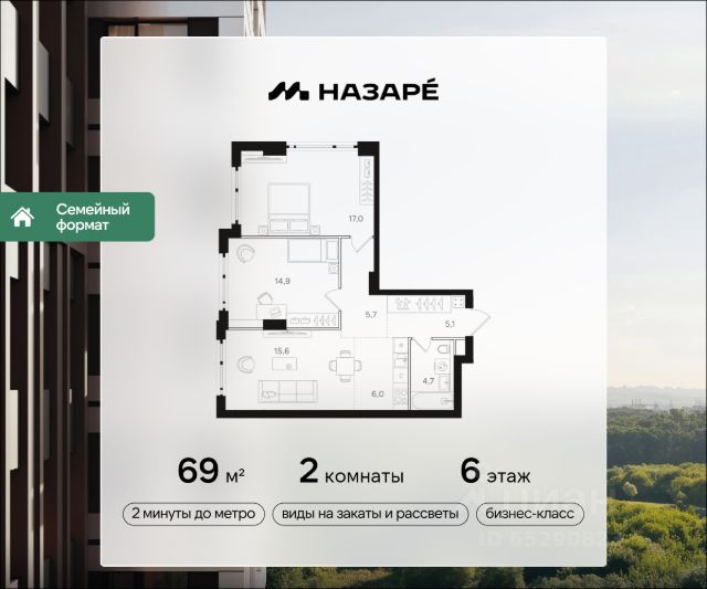 Продается 2-комнатная квартира в ЖК "НАЗАРЕ'" Общая площадь - 52.50 Тип дома - монолитный Этаж - 7 Год сдачи - 2028 Предлагается квартира площадью 52.50 кв. м в новом современном квартале на востоке Москвы, прямо у станций метро и МЦК "Бульвар Рокоссовского". Квартира располагается в корпусе 5 на 7 этаже комплекса бизнес-класса "НАЗАРЕ'". Великолепная транспортная доступность: • 2 минуты ходьбы до метро и МЦК "Бульвар Рокоссовского"; • 3 минуты на авто - удобный выезд на СВХ (МСД); • 10 минут на авто до национального парка "Лосиный остров"; • 10 минут на авто до "Измайловского парка"; • 15 минут до авто до парка "Сокольники"; • 15 минут занимает выезд на ТТК, • 18 минут на авто до Садового кольца. Индивидуальная архитектура в современном стиле: • шесть башен переменной высотности от 24 до 43 этажей, в том числе одна высотная 143-метровая доминанта, которая станет достопримечательностью востока Москвы; • авторы архитектурной концепции - знаменитое бюро СПИЧ (среди их работ - башня "Федерация", новое здание Третьяковской галереи, реконструкция БСА "Лужники" и др.); • торгово-развлекательный комплекс с фитнес-центром, детской игровой комнатой и открытыми террасами прямо возле квартала; • дизайнерские лобби от бюро ABOVE ARCHITECTURE с панорамными окнами, интерьерами в теплой цветовой гамме и мягкой зоной ожидания располагаются в каждой башне; • корпуса расположены так, чтобы из окон открывались потрясающие виды на закаты и рассветы, зеленые панорамы или огни мегаполиса; Особенности расположения "НАЗАРЕ'" находится максимально близко к метро, и в то же время проект вписан в уже существующую инфраструктуру зеленого столичного района Богородское. Это обеспечивает быстрый доступ ко всем нужным объектам инфраструктуры (детские сады, школы, медцентры, магазины, салоны красоты, фитнес-клубы, футбольные поля, спортивные школы), а также к живописным зеленым зонам - национальному парку "Лосиный остров", парку "Сокольники", Черкизовскому детскому парку, Измайловскому лесопарку с усадьбой Измайлово. Собственная инфраструктура и благоустройство Шесть башен квартала будут объединены цокольным этажом, в который можно попасть как с улицы, так и со стороны лобби. Здесь разместятся необходимые для комфортной повседневной жизни кофейни, супермаркет, рестораны, магазины и многое другое. В комплексе предусмотрен вместительный двухуровневый подземный паркинг с келлерами для хранения сезонных вещей. Во дворе комплекса "НАЗАРЕ'" будут места как для спокойного отдыха и работы, так и для игр и спорта. Здесь организованы игровые площадки для детей всех возврастов, места для стритбола и тенниса, а также зона с природным ландшафтом и коворкинг с экологичной деревянной мебелью.