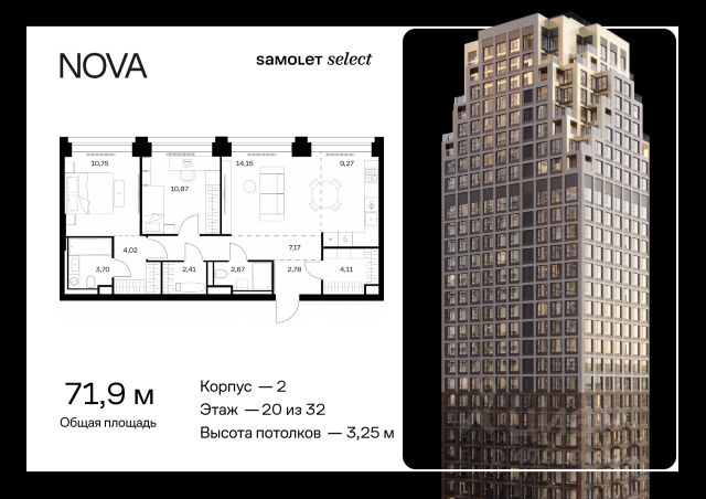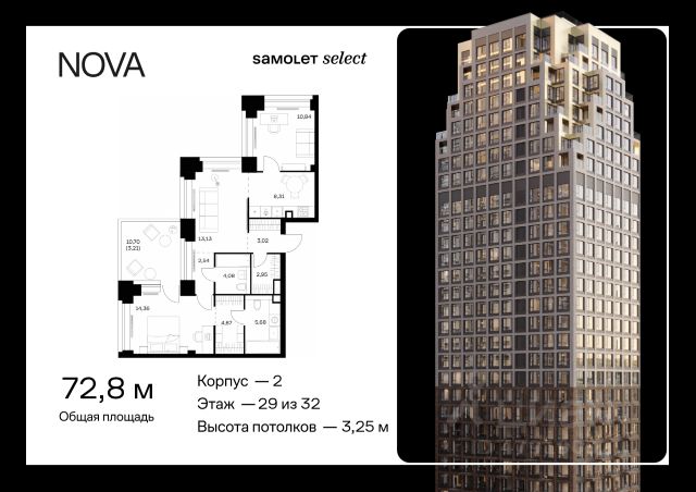 Строим кварталы для жизни с заботой о будущем. Предлагается 2-комнатная квартира премиум-класса 72,34 кв.м в корпусе 1 на 12 этаже, в ЖК "NOVA" Квартира без отделки. Доступность опции "отделка" и возможность комплектации мебелью и декором уточняйте у застройщика. Приобрести квартиру возможно по специальным акциям от застройщика, с текущими условиями акций можно ознакомиться в блоке "Акций". Цена динамическая и может отличаться, уточняйте актуальность у застройщика. "NOVA" — первый проект в премиальной линейке Samolet Select. Возводится в престижных Раменках и вблизи Кутузовского проспекта. Шесть корпусов переменной этажности повторяют очертания горных вершин и воплощают концепцию проекта-скалы: возвышающийся над городом ансамбль дает то же ощущение масштаба и ясности. Утопающая в зелени "Долина реки Сетунь", гастрономические точки, кинотеатр под открытым небом, бизнес-центр и фитнес-клуб — все это делает NOVA самодостаточным, но чувствующим пульс города пространством.