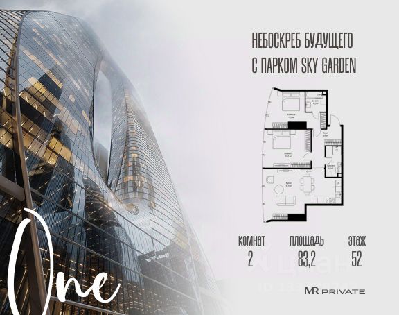 Старт продаж! Квартиры в Москва-Сити в самой инновационной башне One. В продаже 2-комнатная квартира площадью 67.20 м² на 41-м этаже. Новый современный жилой комплекс премиум-класса One расположен в самом сердце деловой жизни столицы — в Москва-Сити, где захватывающая дух архитектура встречается с безупречным уровнем комфорта. One находится в Пресненском районе, в пешей доступности от станции метро "Деловой центр". Проект был разработан выдающимся архитектором Сергеем Кузнецовым при участии международного бюро Gensler. Уникальная скульптурная форма башни, вдохновленная лентой Мебиуса, создает новый узнаваемый силуэт делового центра и задает непревзойденный стандарт вертикальной жизни. По замыслу архитекторов, жилой комплекс представляет собой две вертикальные башни, соединенные в нижней и верхней точках. На 85 этаже расположен Sky Garden — самый высокий в Европе парк с оазисом природы и секретным садом в облаках, а на 83 этаже парит стеклянный мост Sky Bridge с панорамными видами. Важнейшей особенностью комплекса является его всесторонняя инфраструктура по принципу All-in-One: закрытый клуб с лаунжами, приватным кинотеатром, бильярдной, рабочими зонами и фитнесом. Здесь же расположена торговая галерея бутиков и премиальный гастро-кластер, концепцию которого разработал известный ресторатор Александр Сысоев. Особенности комплекса: - Эксклюзивная архитектура от главного архитектора Москвы - Самый высокий в Европе небесный сад Sky Garden на 85 этаже - Панорамное остекление от пола до потолка во всех квартирах - Smart-инженерия и сервис уровня пятизвездочного отеля - Приватная клубная инфраструктура All-in-One - Трехуровневый паркинг с зарядными станциями для электрокаров - Круглосуточная безопасность и консьерж-сервис Расположение комплекса: - Пешая доступность от станции метро "Деловой центр" - 2 минуты до Экспоцентра - 5 минут до Дома Правительства - 7 минут до Кутузовского проспекта