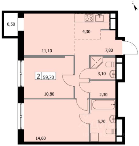 Квартира с черновой отделкой, большими окнами. Возможна покупка с использованием ипотеки.