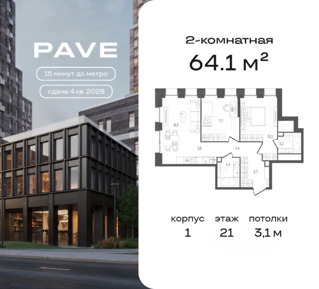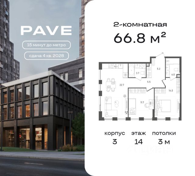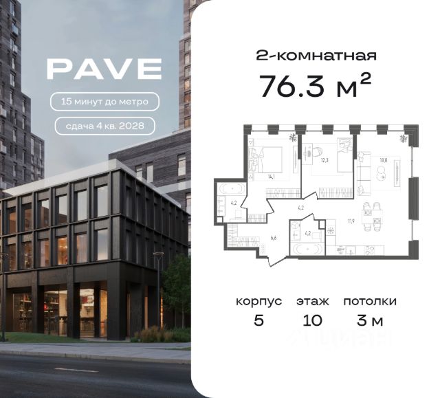 Прямая продажа от застройщика! Продается 2-к. квартира квартира номер 214 общей площадью 76.3 кв.м. на 19-м этаже 27 этажного дома, 3. Без отделки. Проект бизнес-класса Pave от девелопера FORMA. Метро Павелецкая в пешей доступности, удобные выезды на ТТК и Садовое кольцо. Архитектура от бюро MAYAK. Благоустройство дворов — Magly. Приватный внутренний двор с водной гладью и местами для отдыха, коворкинг под открытым небом. Детские площадки с уникальным игровым оборудованием, спортивные площадки с зоной воркаут. Квартиры с панорамным джамбо остеклением, французскими балконами, террасами, мастер-спальнями и гардеробными. Высота потолков от 3,1 м. На последнем этаже пентхаусы с каминами и высотой потолков 3,6 м. Дизайнерское гранд-лобби для резидентов с фит-рум, коворкингом и общественной гостиной. Двухуровневый подземный паркинг и келлеры.