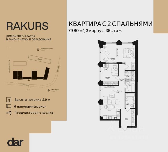 Продаётся 2-комнатная квартира 54.20 м² в жилом комплексе Ракурс. Квартиру отличают панорамное остекление, улучшенная шумо и воздухоизоляция. Дом сдаётся в 1 квартале 2028 года, продажи проходят через эскроусчета. Подземный паркинг, коворкинг, закрытая благоустроенная территория с фонтаном и артобъектами. Гибкие условия покупки. Rakurs — место, в котором жизнь приглашает к исследованию. Концепция проекта knowledge-centric среда, которая выражается здесь в образе жизни: • атмосфере интеллектуальной среды, • доступности образования, • фокусе на возможности для развития. RAKURS разместился в районе науки и окружен исследовательскими институтами и образовательными учреждениями, при этом на территории построена своя школа с уникальной концепцией. Расположенный на пересечении улиц Маршала Бирюзова и Берзарина, недалеко от станций метро "Октябрьское поле" и "Зорге", дом угождает транспортной доступностью автомобилистам и пешеходам. Инфраструктура же района создана с заботой о людях: здесь много парков, кафе и других уютных мест для отдыха. В состав комплекса входят три башни высотой 18, 26 и 44 этажа, каждая из которых имеет свой запоминающийся силуэт. Между собой башни связаны среднеэтажными строениями с индивидуальными фасадами. Композиция и пластика корпусов, а также панорамное остекление башен обеспечивают квартиры максимальным количеством дневного света и выигрышными видами на центр города и Москву-Сити. Упор на функциональность не лишает проект его уникального образа — все башни имеют неординарную форму с харизматичными уступами и консолями. Rakurs предлагает широкий выбор уникальных вариантов жилья — от студий до эксклюзивных квартир с приватными террасами. Проект спроектирован с фокусом на биофильность и функциональность. Во дворах Rakurs можно насладиться завтраком на террасе кафе, игрой с детьми или спортом на свежем воздухе. В Rakurs cвой комьюнити-центр - многофункциональное пространство для работы, отдыха, общения и развития. Одна из важнейших частей центра — частная библиотека с лаундж-зоной. Книжный фонд отбирается для нее кураторской командой, а дизайн пространства сделан так, чтобы жители могли почувствовать умиротворяющую атмосферу библиотечного зала. Идея knowledge-centric среды поддерживается здесь и книжным магазином с лекторием, а также зонами для самостоятельной учебы и занятий с преподавателями.