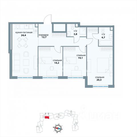 Жилой комплекс Река 1 с красивым панорамным видом из окон на ПАРК. Сделан ремонт white box, стяжка пола, проведена электрика, сантехника все по дизайн проекту, отштукатурены стены, лоджия 5 м². Квартира с двумя изолированные комнатами общей площадью 83 м² в комплексе премиум-класса. В подземном паркинге 4 машиноместа, продажа обсуждается отдельно. Благодаря высоте потолков 3,65 метра и панорамным окнам пространство наполнено естественным светом, открываются виды на улицу и благоустроенную территорию комплекса с ландшафтным дизайном. Два грузопассажирских лифта, закрытая территория, видеонаблюдение, круглосуточная охрана, служба консьерж сервиса 24, просторное Лобби. Детская игровая. Бьюти и фитнес-рум. Благоустроенная территория двора. Зеленые кабинеты, водная площадка, фитнес-зона, детская площадка с флорариумом, множество укромных уголков для отдыха на придомовой территории. Отдельный выход в природный парк Событие и реке Раменка. Один взрослый собственник. Подземный двухуровневый паркинг оборудован местами с возможностью установки зарядных систем для электромобилей, а также - системой автоматической мойки колес. Комплекс "Река" находится в престижном районе Раменки, по соседству с МГУ и МГИМО, дипломатическими представительствами зарубежных стран, крупными парками и природными заказниками. В 5 минутах ходьбы - станция метро "Мичуринский проспект", от которой до центра можно доехать за 15 минут. Также 15 минут понадобится, чтобы добраться на автомобиле до Садового кольца. В 10 минутах езды находятся МКАД и ТТК, а в 25 минутах езды - аэропорт "Внуково". Купить 2-комнатную квартиру в ЖК Река в Москве.