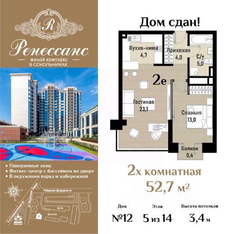 • ✓ В базе Циан 90 2-комнатных квартир в ЖК Ренессанс в Москве