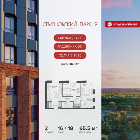 Ипотека для каждого! Полная стоимость кредита от 11,578% до 22,490%. Ставка от 0,11% в АО "Альфа-Банк" фиксируется на 1 год с даты заключения кредитного договора, далее полная стоимость кредита от 25,819% до 28,767% ставка 21,59% до окончания срока кредитования. Первоначальный взнос — от 20% от стоимости квартиры. Срок кредитования — от 3 до 30 лет. Ипотека на весь срок! Полная стоимость кредита от 23,396% до 26,058% со ставкой 14,5%! Первоначальный взнос —от 20,01% от стоимости квартиры. Срок кредитования — от 3 до 30 лет. АО "Банк ДОМ.РФ" универсальная лицензия Банка России 2312 от 19.12.2018. Скидка 7% при покупке квартиры! Цена указана с учетом максимального размера скидки. Продается 2-к квартира 62,2 кв.м. в ЖК "Семеновский парк 2" на 11-м этаже 25 этажного дома. Компания "РГ-Девелопмент" предоставляет скидки на квартиры в жилом комплексе. Акция действительна с 12.09.24 г. до 30.11.25г. включительно. Чтобы воспользоваться предложением, необходимо подписать договор на приобретение недвижимости до 30.11.25г., включительно. Скидка 5% + Рассрочка 0% При приобретении дольщиком квартиры с использованием способа оплаты "Рассрочка 0%", у покупателя также есть право воспользоваться скидкой в размере 5% от полной стоимости квартиры. Условия программы рассрочки: - Первый платеж составляет 20% от стоимости объекта и вносится при заключении ДДУ. - Оставшаяся сумма выплачивается за месяц до планового срока ввода ЖК в эксплуатацию, то есть не позднее 30.11.2025. Прямая продажа от застройщика! Квартиры без отделки. Срок сдачи корпуса - 4 кв. 2025 г. ЖК "Семеновский парк 2" - это идеальное место для того, чтобы стать вашим домом. Проект расположен в исторической части Москвы вблизи Измайловского лесопарка, в 1 км от ЦАО. 4 станции метро отделяют вас от Красной площади и 15 минут на автомобиле - от Садового кольца.