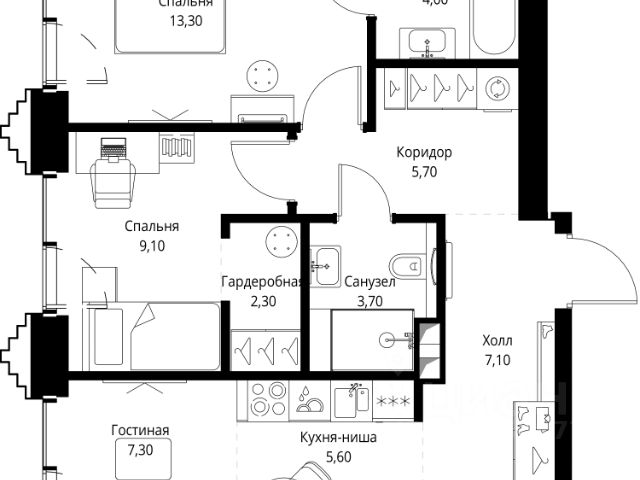 Прямая продажа от застройщика. В ЖК SET продается 2-комнатная квартира площадью 63.30 м², расположенная в корпусе 2, на 40 этаже 59 этажного дома. SET имеет стратегически выгодное расположение в ЗАО, в районе с большой историей и блестящим будущим: между природной зоной долины реки Сетунь и Кутузовским проспектом. В рамках возведения первой очереди предусмотрено три корпуса высотой 18, 45 и 59 этажей. На верхних этажах спроектированы общедоступные смотровые площадки с панорамным обзором на центр столицы. Преимущества проекта: • Функциональные планировочные решения • Контроль проникновения через входную дверь • Система управления освещением и температурой в квартире • Система защиты от протечек с функцией перекрытия воды • Вход в подъезд по биометрическим считывателям Face ID • Скоростные лифты • Двухуровневый подземный охраняемый паркинг на 495 машино-мест Застройка SET включает в себя не только жилые корпуса, но и инфраструктурные объекты. Все необходимое для повседневного комфорта будет расположено в шаговой доступности: • Фитнес-клуб с бассейном • Ведущая городская школа, детский сад и школа искусств • Центр культуры и досуга • Медицинский центр • Кафе и рестораны Расположение комплекса: Пешком: • Метро "Давыдково" - 17 минут • Парк "Долина реки Сетунь" - 3 минуты • Открытие новых станций метро в шаговой доступности в будущем Инфраструктура: Разнообразить свой день резиденты VEER смогут также проводя больше времени на свежем воздухе. Двор разделен на 4 зоны разных эмоций и действий, которые пересечены и соединены веерными прогулочными маршрутами: • Спортивная площадка устроена в глубине ""Кленовой рощи"" • В ""Чайном домике"" будет создан навес с утеплением для отдыха в любую погоду • Площадки для детей воплотятся в ""Волшебный лес"" с цветами, зеркалами и световым дизайном • ""Центральная площадь"" устроена у водного оазиса живописного пруда. " На машине: • "Москва-Сити" - 15 минут • Садовое кольцо - 20 минут • ТЦ "Океания" - 8 минут • ТЦ "Времена года" - 13 минут • Сколково - 12 минут • Гребной канал - 17 минут Компания MR предлагает своим клиентам специальные условия приобретения квартир в рамках программ ипотечного кредитования от банков-партнеров.