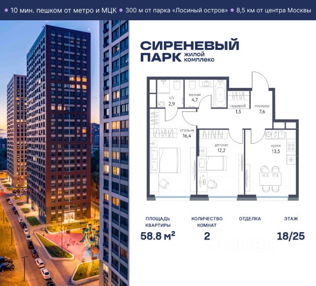 Продаётся просторная 2-комнатная квартира общей площадью 42.7 м² на 3 этаже в новом жилом комплексе "Сиреневый парк", расположенном в Восточном административном округе Москвы на улице Тагильская. Всего 10 минут ходьбы от станции метро "Бульвар Рокоссовского" и одноимённой платформы МЦК. Высококачественное монолитное строительство гарантирует сохранение тепла в доме, а наличие квартир с предчистовой и чистовой отделкой позволяет вам сэкономить время и сразу же переехать в свое жилье после покупки. Благодаря разнообразию планировок вы сможете выбрать идеальный вариант, соответствующий вашим предпочтениям и образу жизни. Предлагаются квартиры: - с просторными кухнями-гостиными, - с нишами для хранения вещей и отдельными гардеробными, - мастер-спальни с собственными санузлами, - большие комнаты с высокими потолками (2,9 м) и с увеличенными безопасными окнами (1,95 м) , которые наполнят ваш дом естественным светом; - с чистовой отделкой по двум дизайн-проектам на выбор; - с остекленными лоджиями и панорамными видами на лес. Каждая деталь в этом доме создана для вашего комфорта: - безбарьерная среда, - бесшумные скоростные лифты, - машиноместа в отапливаемом подземном паркинге и кладовые на -1 этаже с доступом из лифта, - развитая инфраструктура с супермаркетами, кафе, фитнес-клубами, салонами красоты и частным детским садом обеспечивает максимальное удобство жителям. В 300 метрах от ЖК расположен Национальный парк "Лосиный остров". Способы покупки: 100%, Trade-in, Семейная ипотека без наценки, стандартная ипотека. Запишитесь на просмотр в офис продаж и получите свою персональную скидку по акции Назови свою скидку. ЖК "Сиреневый парк" — гармония в деталях, совершенство в каждом моменте. Застройщик проекта - AFI Development. 2-комнатная квартира 2-комнатных квартир в Сиреневый парк в Москве.