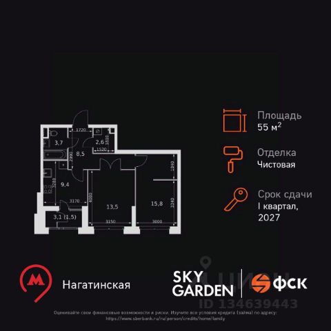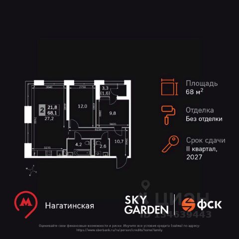 Прямая продажа от застройщика! Жилой Комплекс бизнес-класса. Продаётся 2-к квартира номер 107 общей площадью 56.5 кв.м. на 23-м этаже 44 этажного здания. Без отделки. Цена с учётом скидки. Особенности квартиры: - Мастер-зона с санузлом и гардеробной. Всё для вашего комфорта и удобства, включая личный санузел и гардероб. - Просторная спальня, в которой можно разместить большую кровать. - Линейная планировка - максимальная функциональность и удобство. - Увеличенная ширина окна/окон - больше света и визуального простора. - Душ помимо ванной - дополнительное удобство для вашей семьи. - Гибкая планировка - создайте пространство по своему вкусу. - Можно оборудовать рабочее место - комфорт для работы и учёбы. - Наличие острова на кухне - удобство и стиль для вашей кухни. - Гардеробная - удобство для хранения и организации вещей. - Ниша под шкаф - компактное и удобное место для вещей. - Лоджия - уютное место для отдыха и тишины. Информация о комплексе: Sky Garden расположен в районе Покровское-Стрешнево. На территории этого района шумит листвой одноименный парк. Зеленый живописный район, реки и каналы поблизости, чистый свежий воздух из подмосковных листов - идеальное место, чтобы ощутить себя частью природы. При этом развитая образовательная, социальная и транспортная инфраструктура оставят вам все преимущества жизни в мегаполисе. Sky Garden - идеальный баланс между природной и городской средой. Транспортная доступность: Всего в 12 минутах пешком до м. Тушинская и 15 минутах до станции Тушинская МЦД. На автомобиле: 2 км до Волоколамского шоссе, 2,5 км до МКАД и 15 км до Садового кольца Внутренняя инфраструктура: К вашим услугам современные игровые площадки: тут ваши дети с удовольствием смогут лазить по бревнам, штурмовать горки и стараться не промокнуть, бегая под струями фонтана. В Sky Garden полно возможностей как для совсем маленьких, так и для взрослых. Предусмотрены активности: мастер классы по йоге на английском газоне, воркаут- площадка, велопарковки. Также в вашем распоряжении на территории комплекса будут: поликлиника, аптека, супермаркет, зона для отдыха, сухой фонтан и площадка для подростков. Пространство для работы, оборудованное кофепоинтом и удобными переговорными. Также к вашим услугам кафе и рестораны в коммерческом кластере. Игровая комната, расположенная в центральном лобби, оборудована двухэтажным комплексом, мягкими татами, книжками и играми, способными увлечь ребятню В каждом подъезде на минус первом этаже оборудованы комнаты для хранения взрослых и детских велосипедов, колясок и самокатов Вкуснейшая горячая выпечка, ресторан с любимыми блюдами, надежная мастерская по ремонту обуви, художественная или спортивная секция для ребенка, фитнес или йога для вас, а также всё, что вам нужно для повседневной жизни - есть в нескольких минутах от вашего подъезда Внутри проекта расположена парковая территория площадью 3,5 га с игровыми и спортивными площадками, зонами для отдыха, центральной площадью